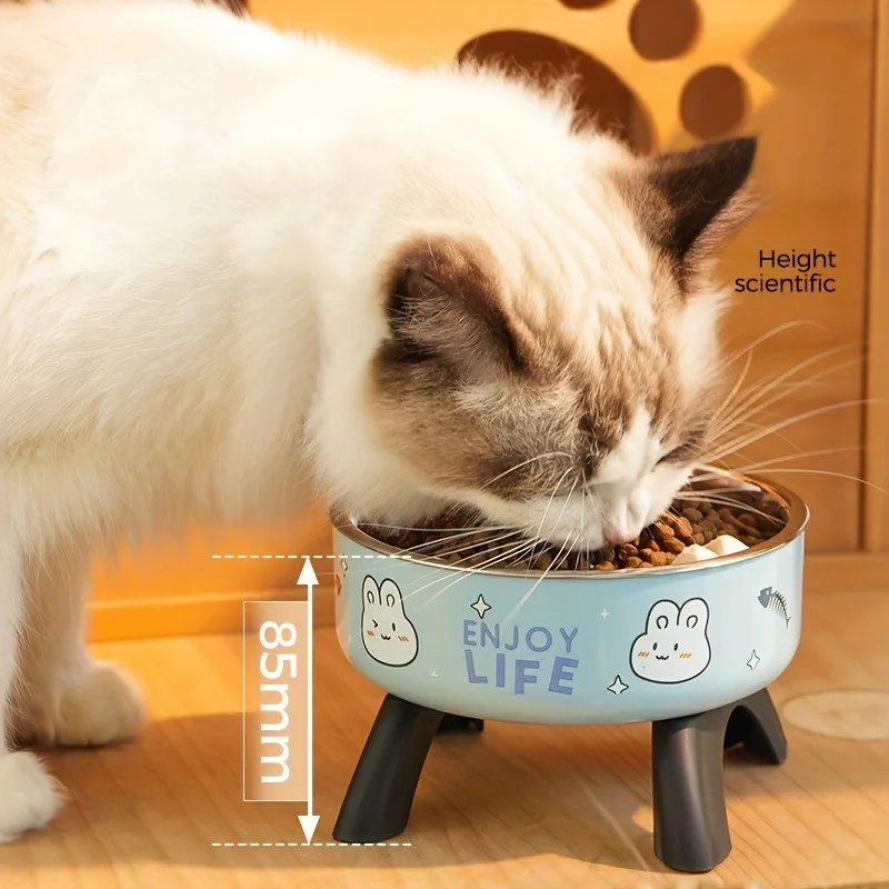 Cuenco antideslizante de acero inoxidable para mascotas con bonito diseño: diseño elevado a prueba de derrames para perros y gatos pequeños La altura científica no cansa el cuello, 85 mm de altura, lo que reduce la compresión de la columna.