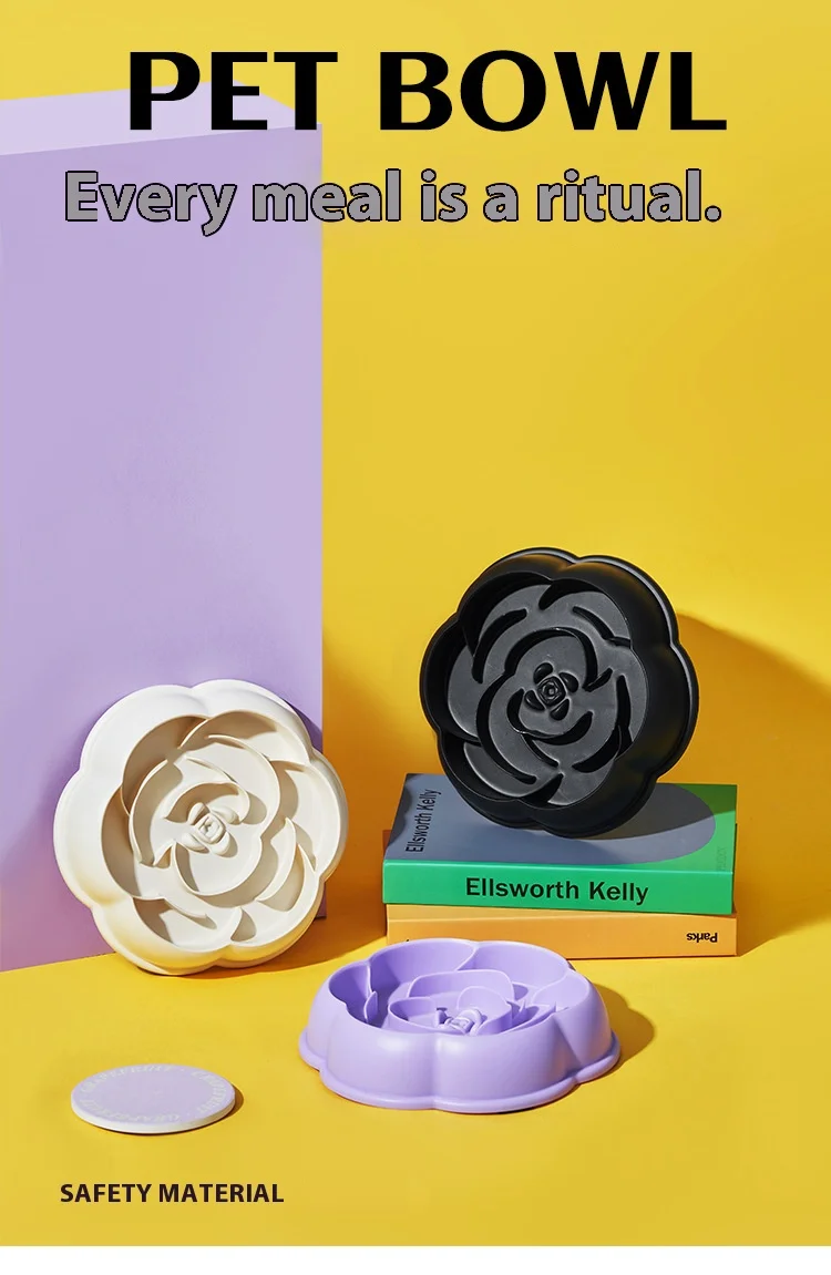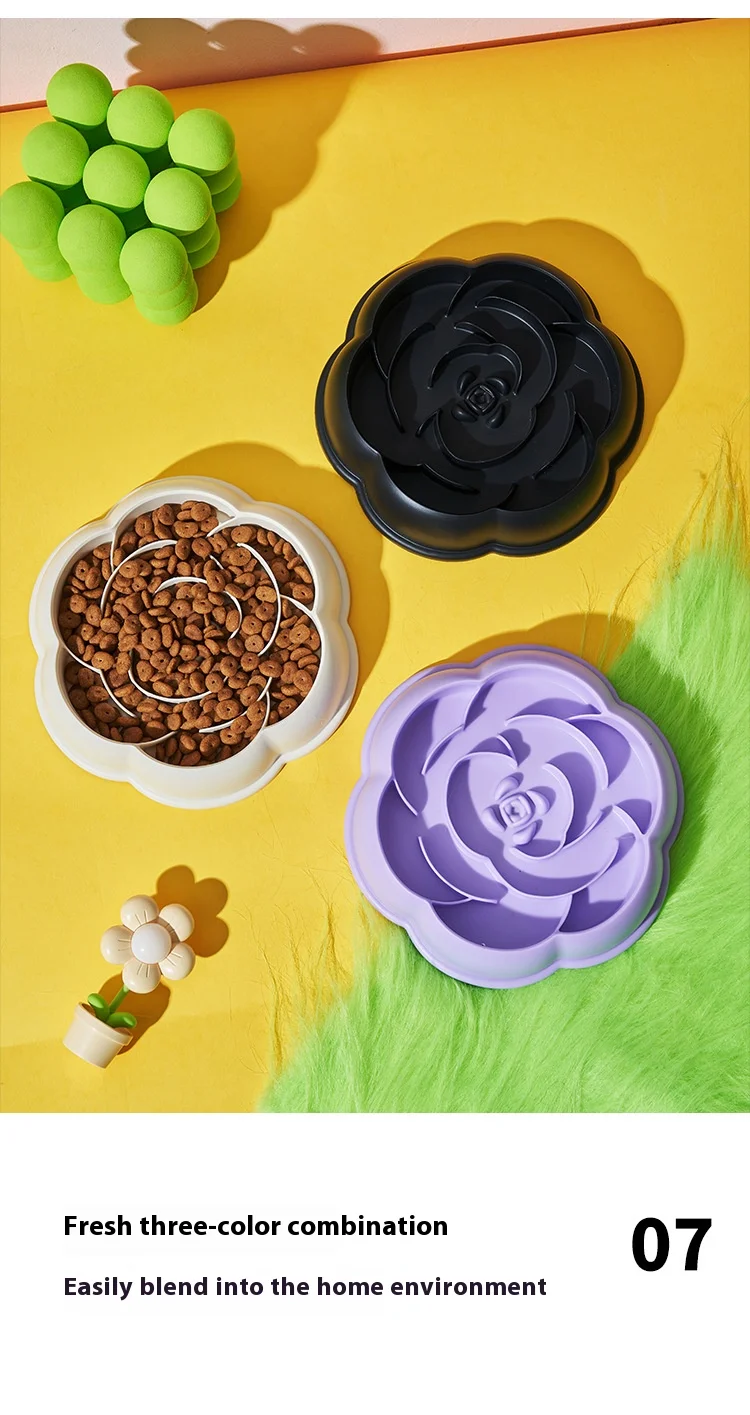 Cuenco antideslizante para comer lento para gatos, plato antiderrames y antiderrames para mascotas con patrones elevados para controlar las porciones
