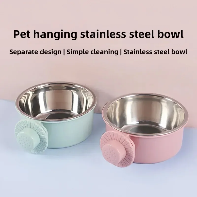 Cuenco antigolpes que se puede fijar y colgar para perros, cuenco para beber de acero inoxidable, suministros para mascotas dos en uno