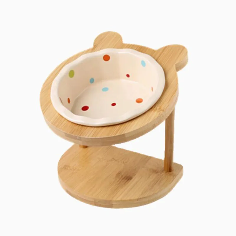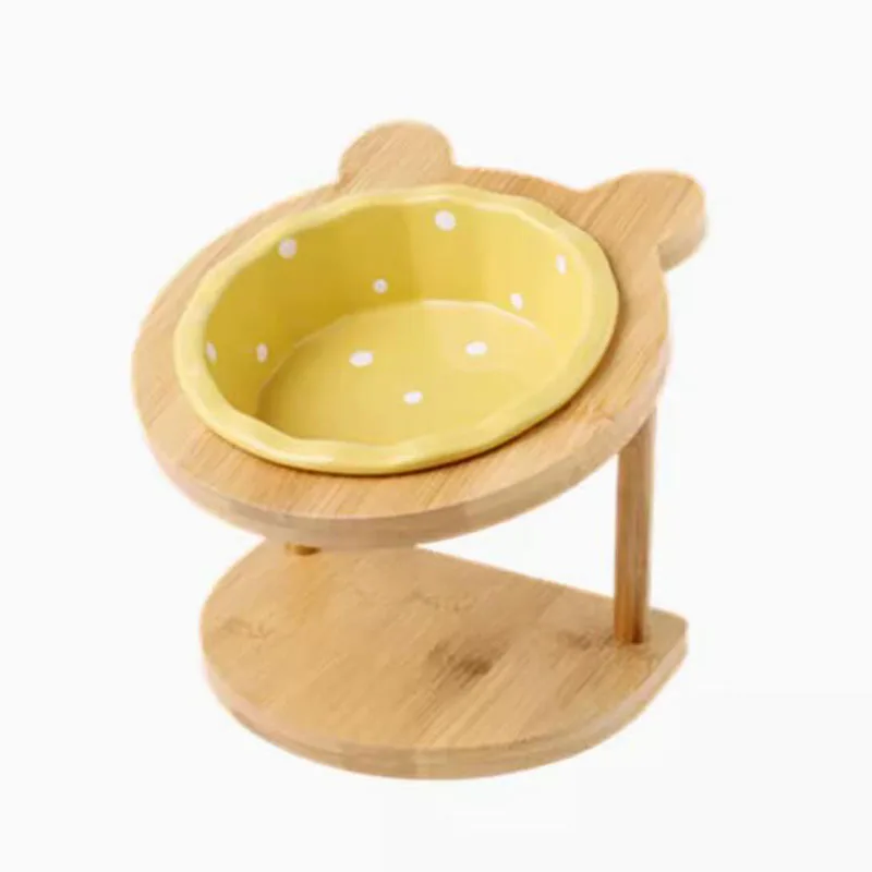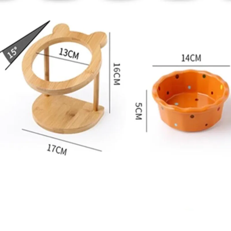 Cuenco de cerámica con estante para mascotas, protector de cuello biselado, cuenco de agua y comida, accesorios para mascotas, gato y perro