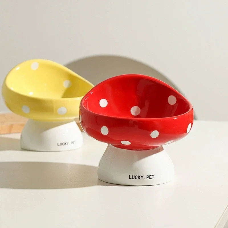 Cuenco de cerámica para gatos, bonitos cuencos de agua con forma de seta para comida para mascotas, comederos de alimentación para perros pequeños elevados, productos de alimentación para cachorros elevados
