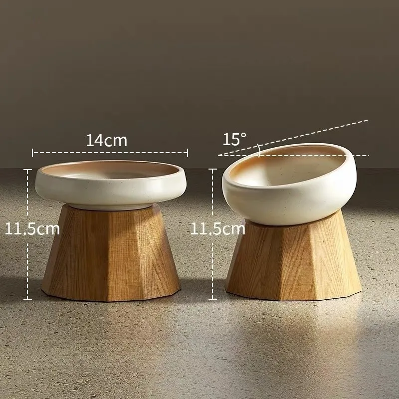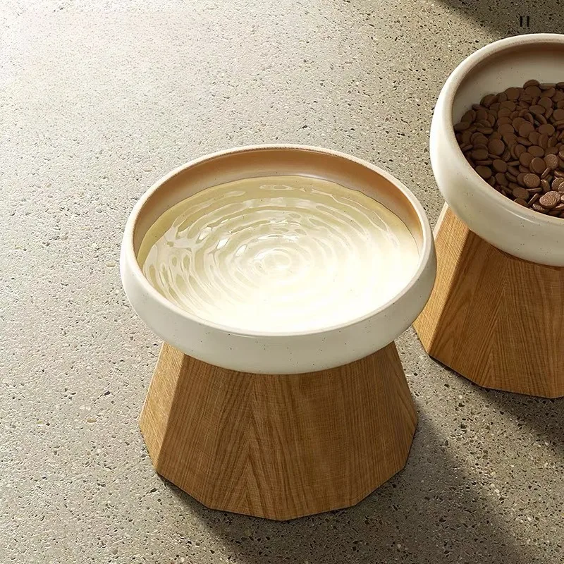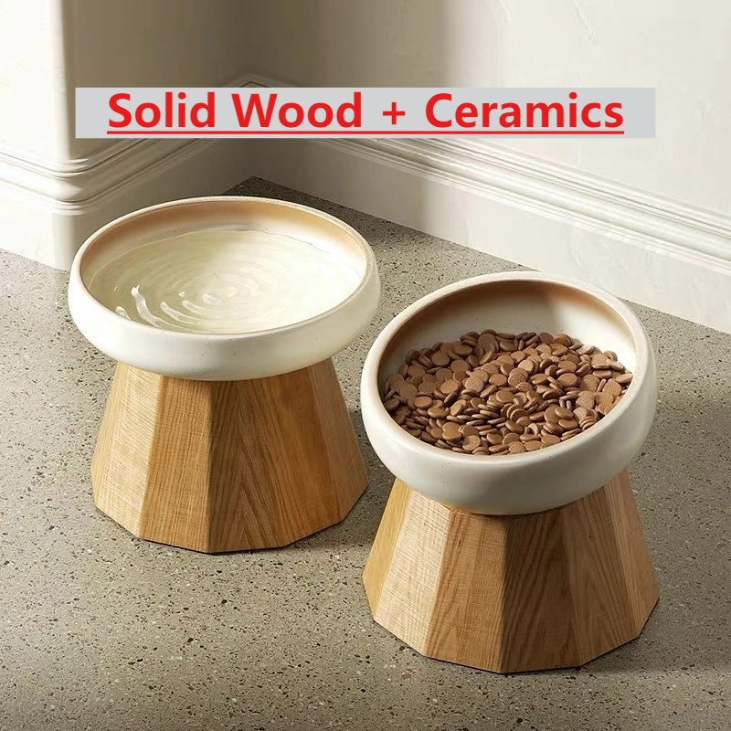 Cuenco de cerámica para gatos, soporte de madera maciza, cuencos para gatos, perros, alimentación, riego, gatos, gatitos, platos para perros, gatitos, cachorros, suministros de productos para mascotas