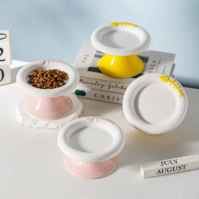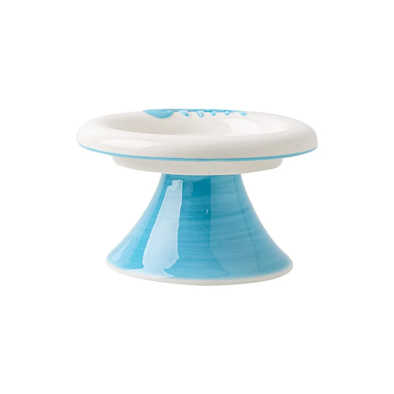 Cuenco de cerámica para mascotas de pie alto y bajo, diseño en forma de flor, alimentador poco profundo antirretorno para accesorios para perros y gatos