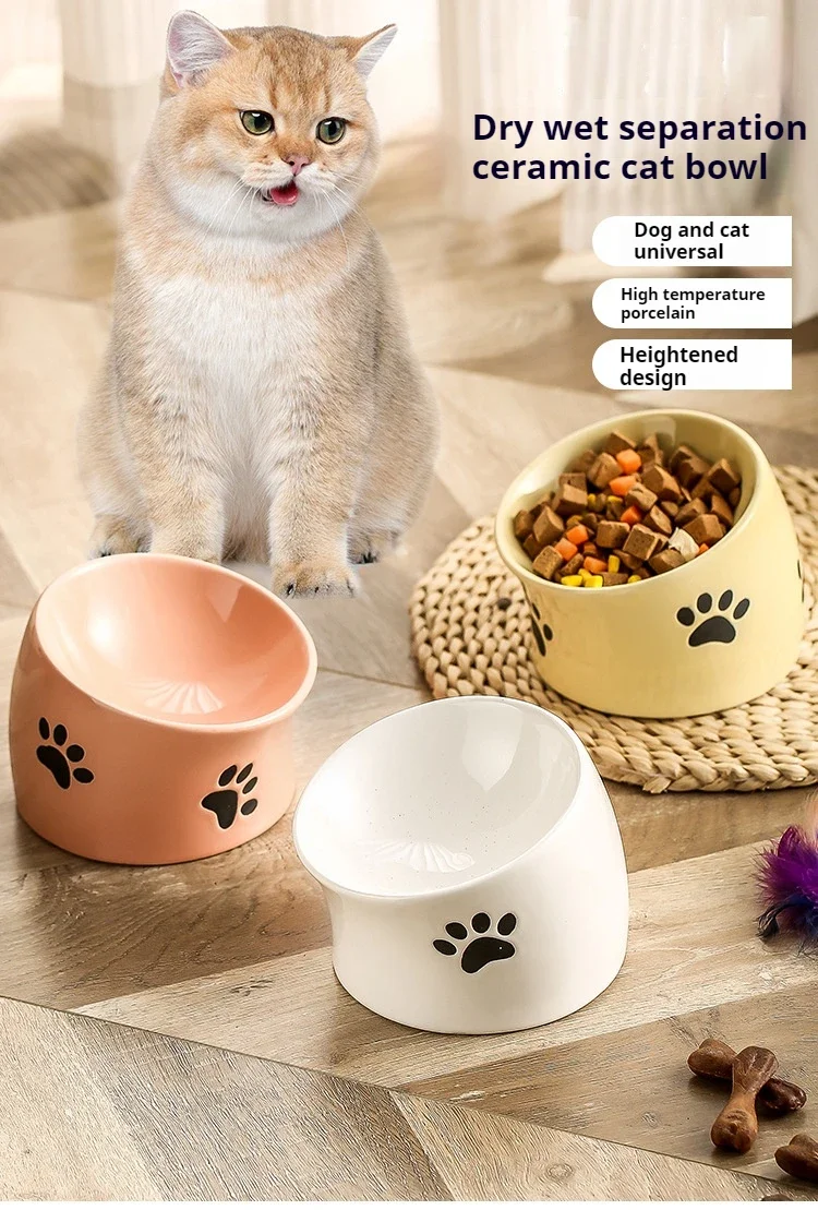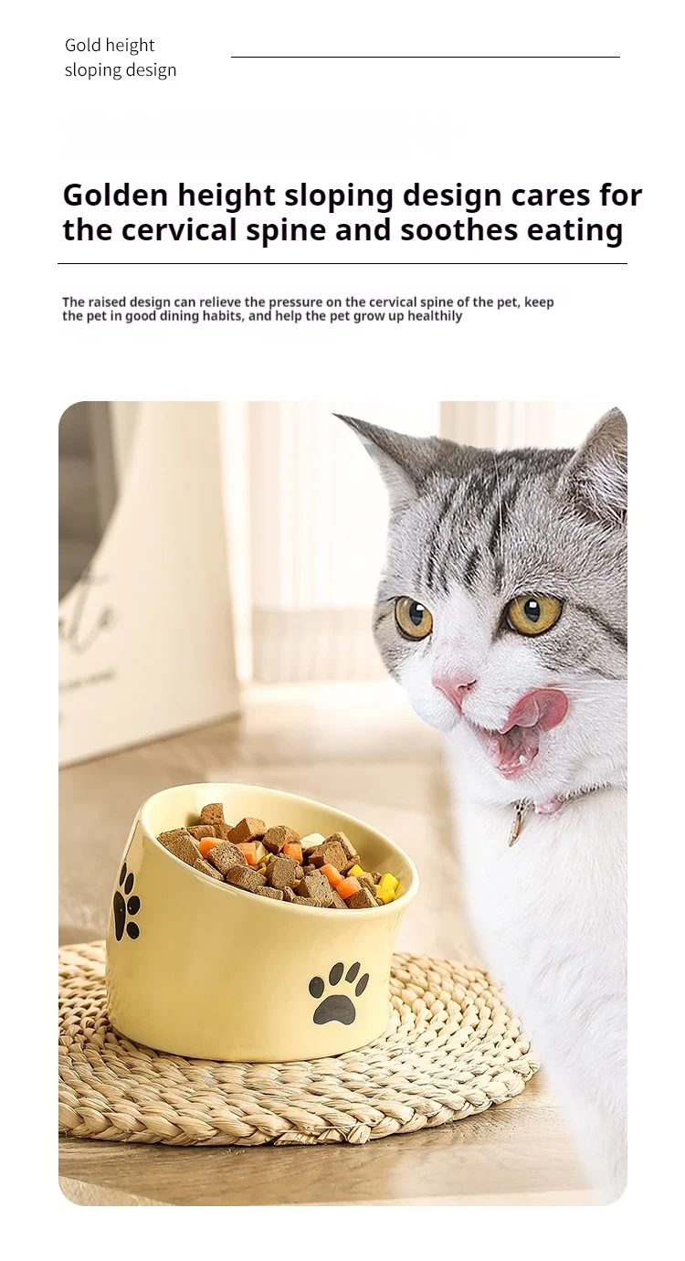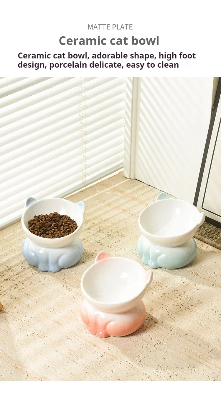 Cuenco de cerámica con patas altas para comida de gato, cuenco de boca inclinada, cuenco de comida para perro y gato, cuenco de comida para gato, cuenco de cerámica lindo
