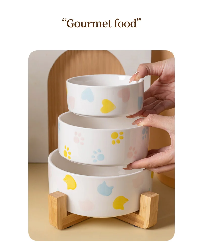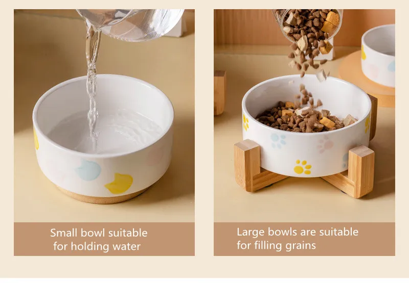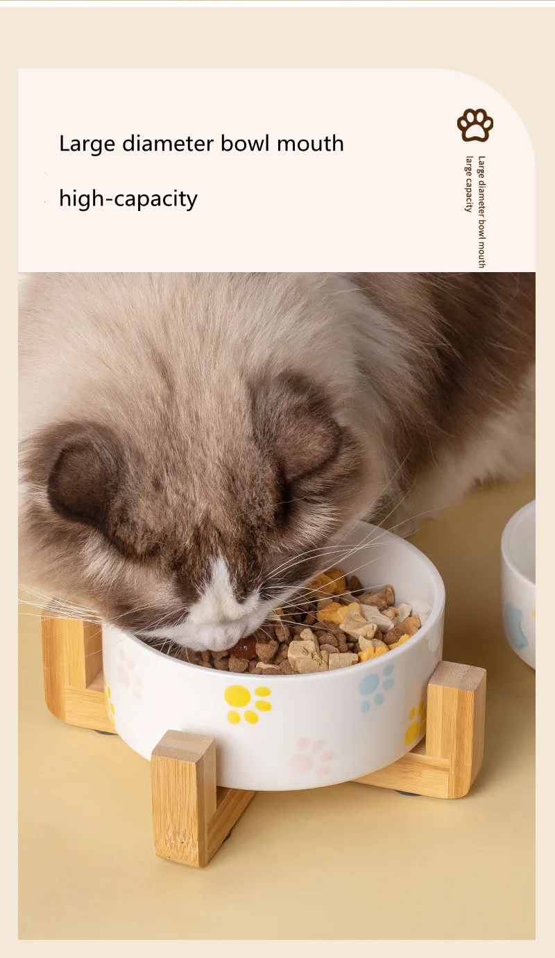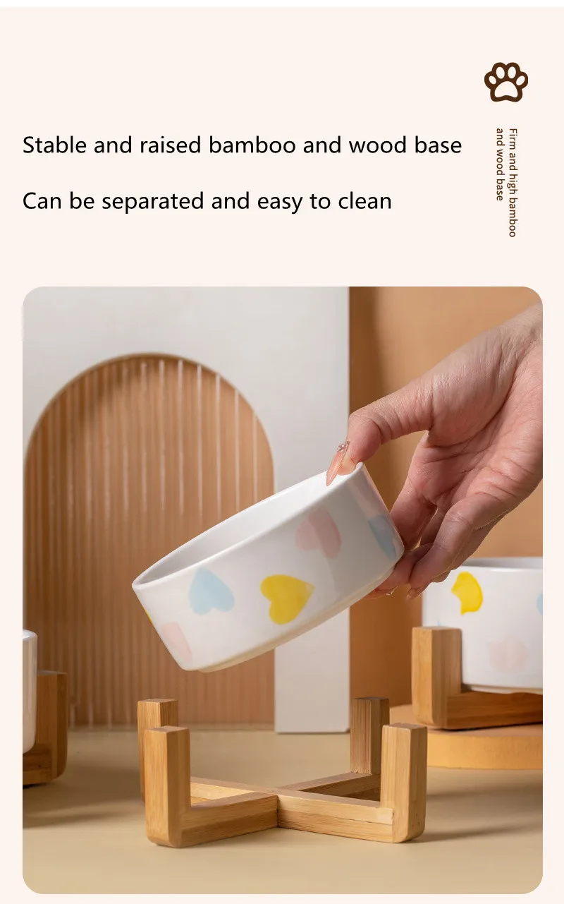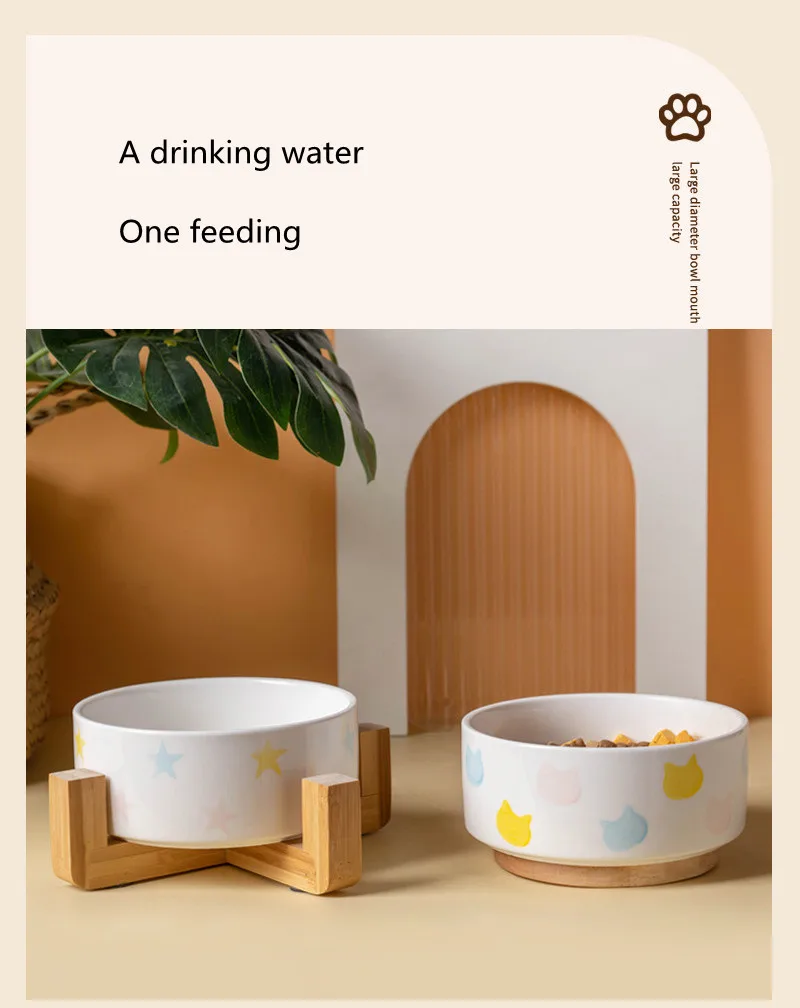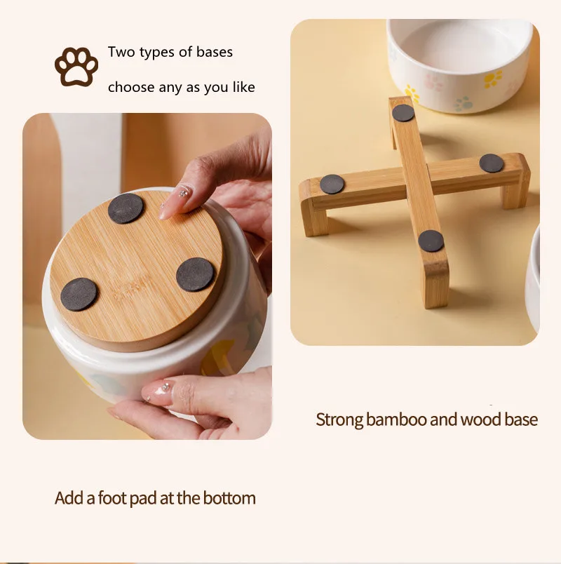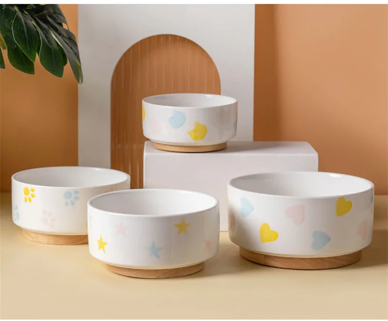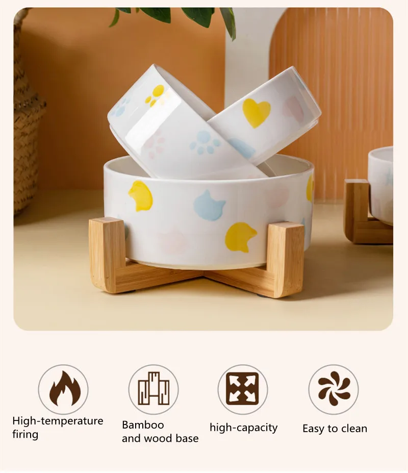Cuenco de cerámica para perros con estera de madera, cuencos de alimentación de boca ancha, alimentador de comida y agua para mascotas, para gato, cachorro, protege la columna Cervical