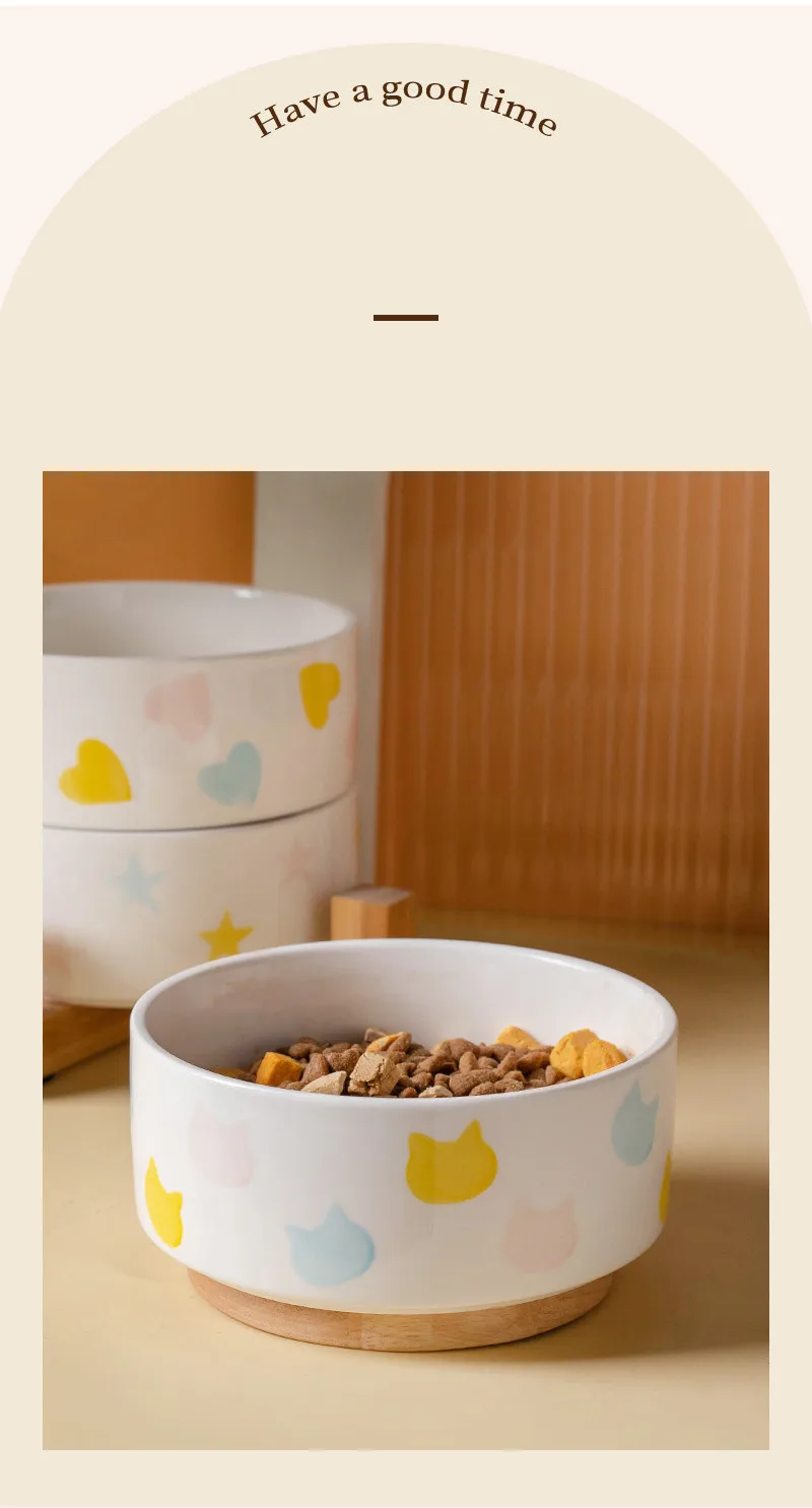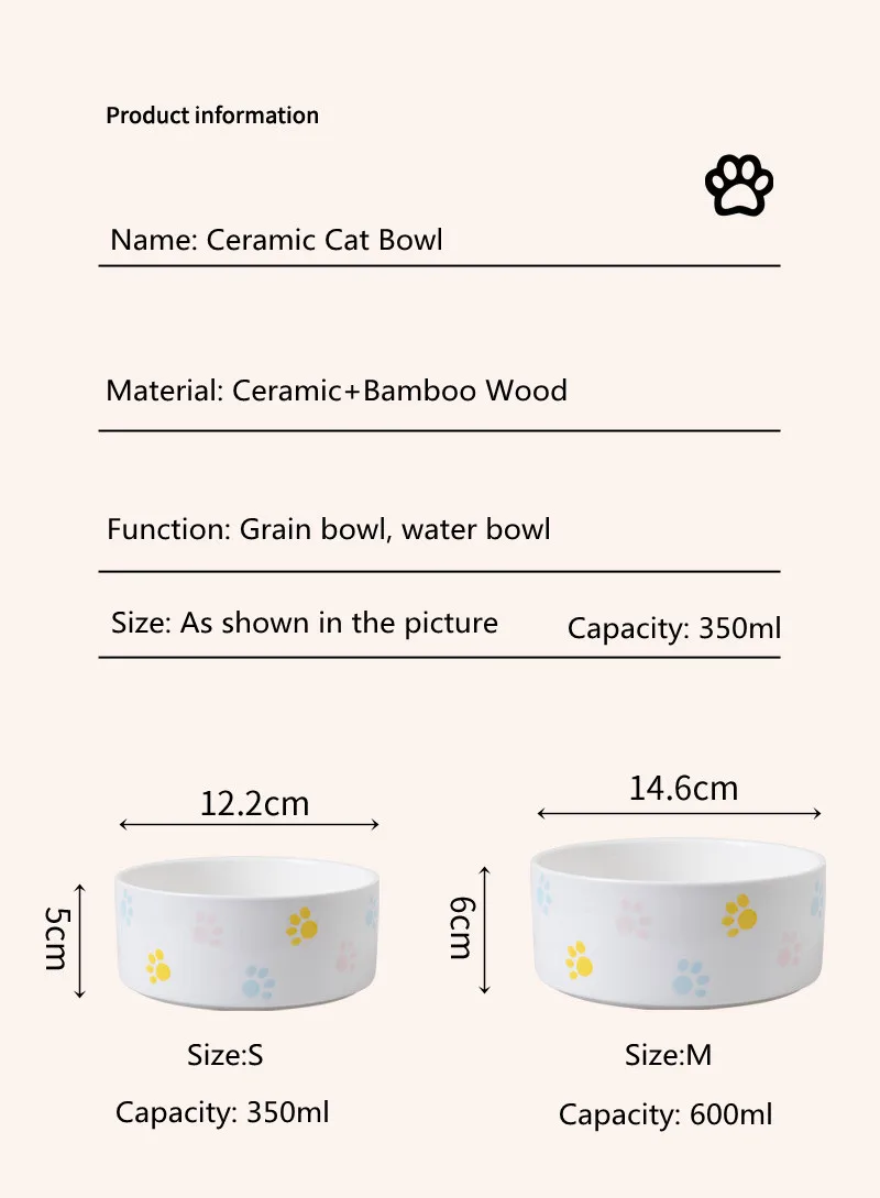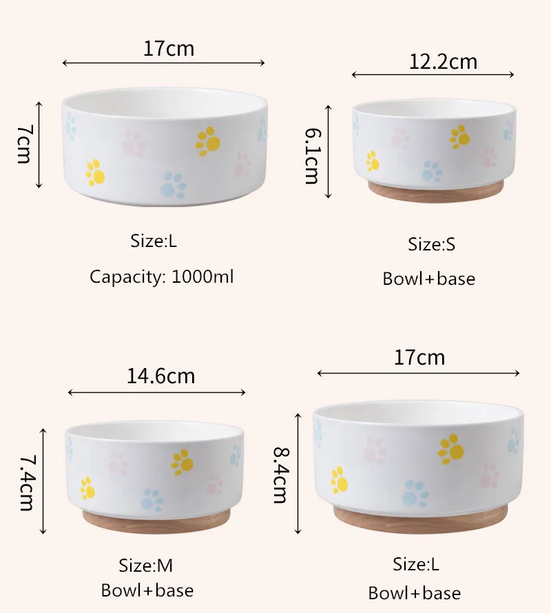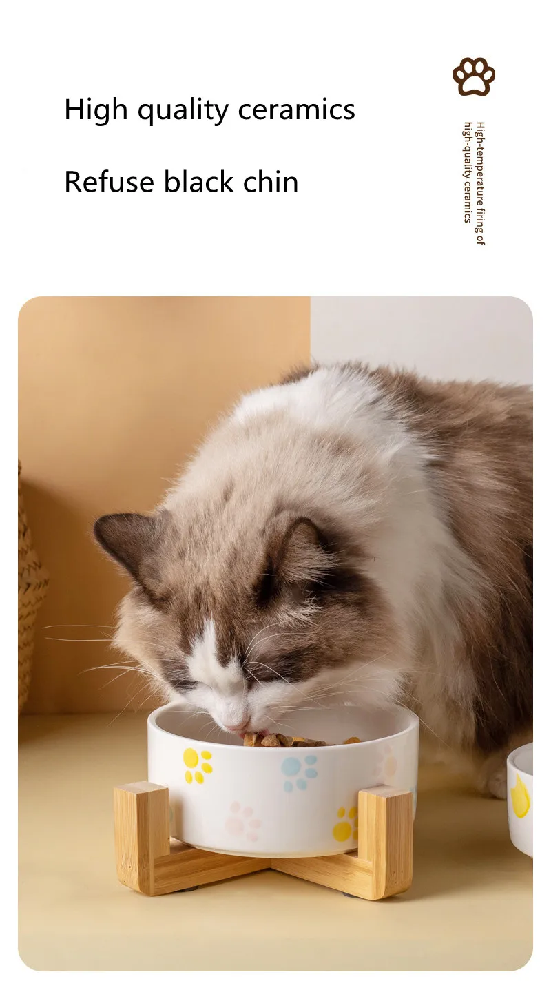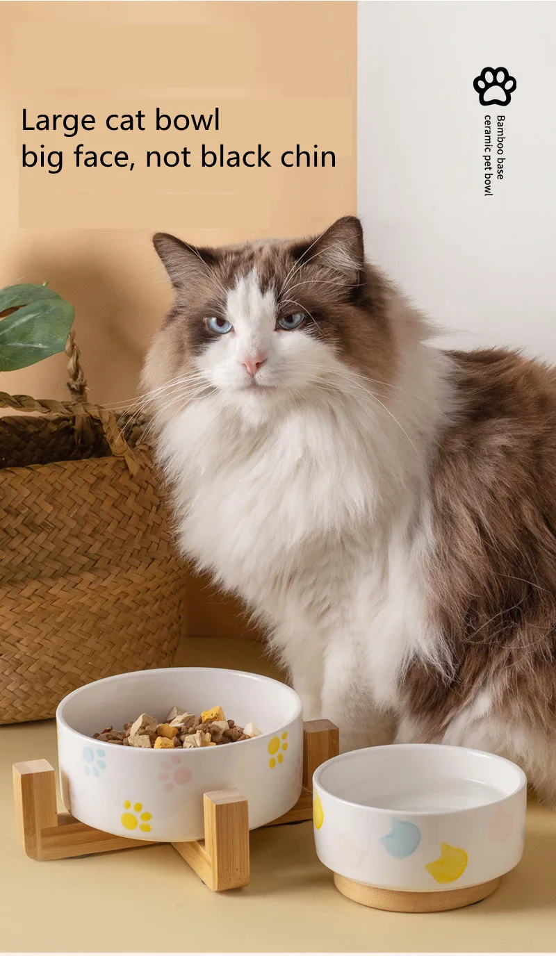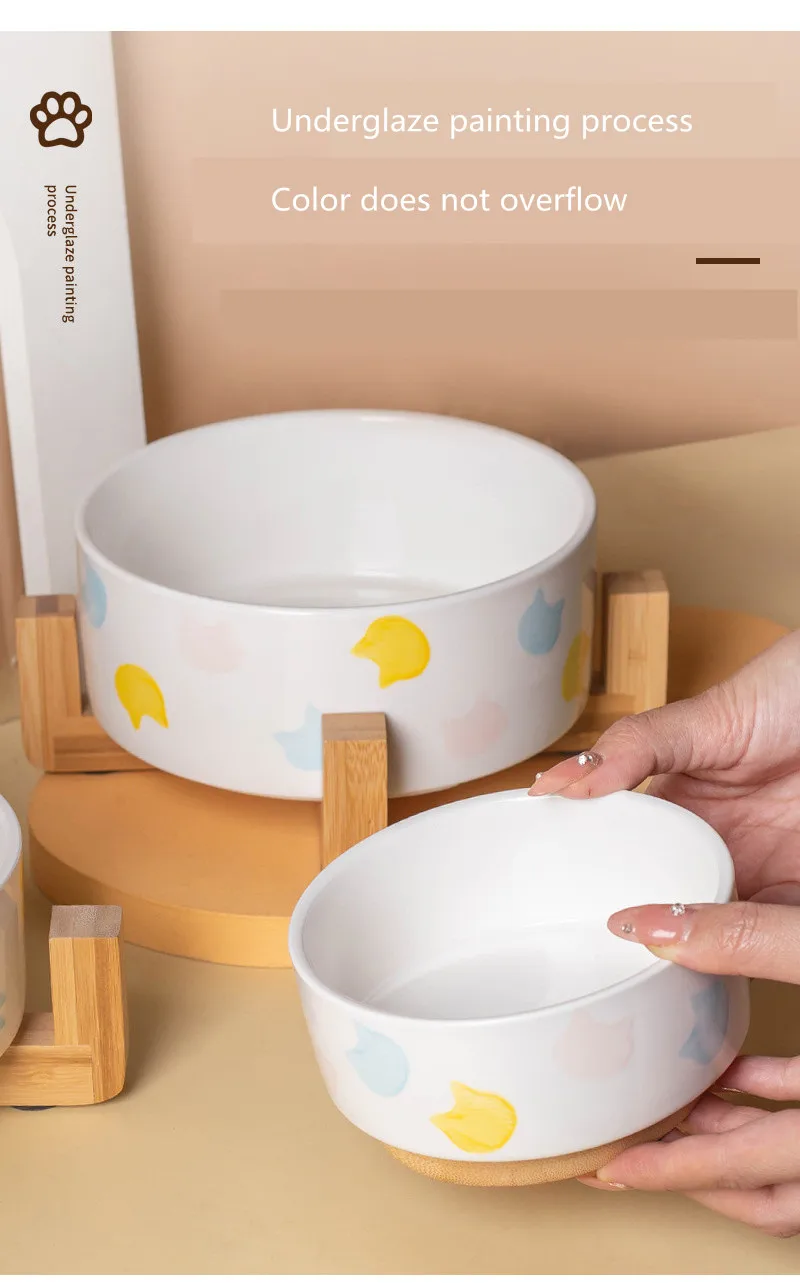 Cuenco de cerámica para perros con estera de madera, cuencos de alimentación de boca ancha, alimentador de comida y agua para mascotas, para gato, cachorro, protege la columna Cervical