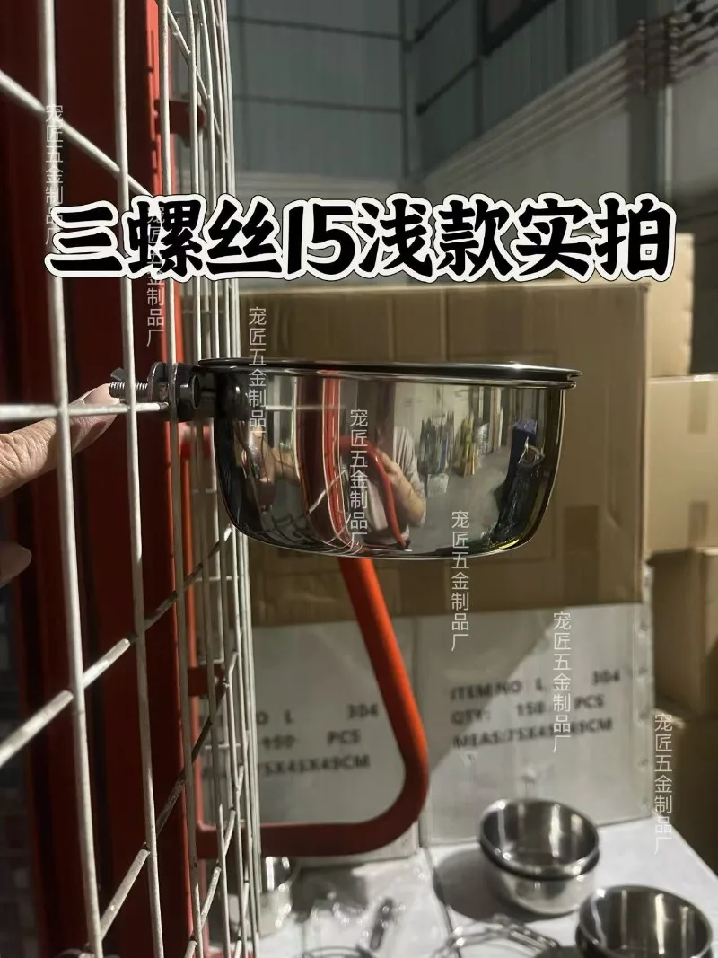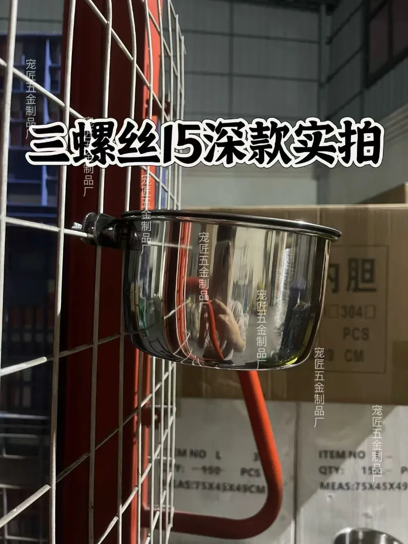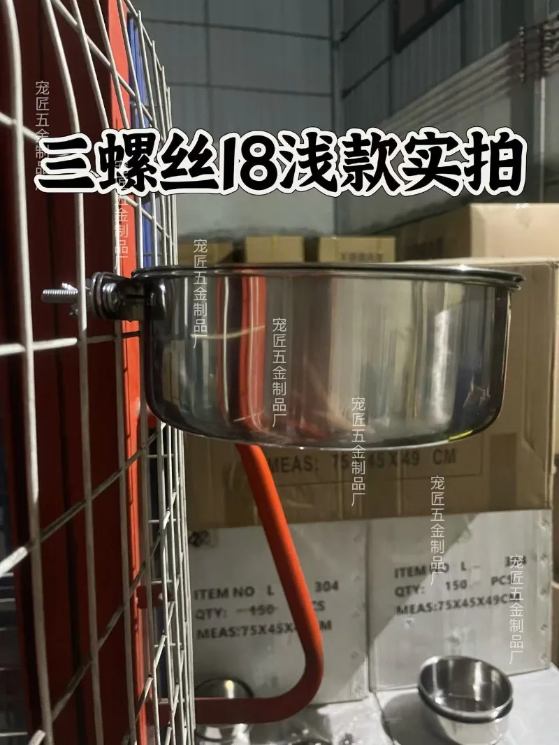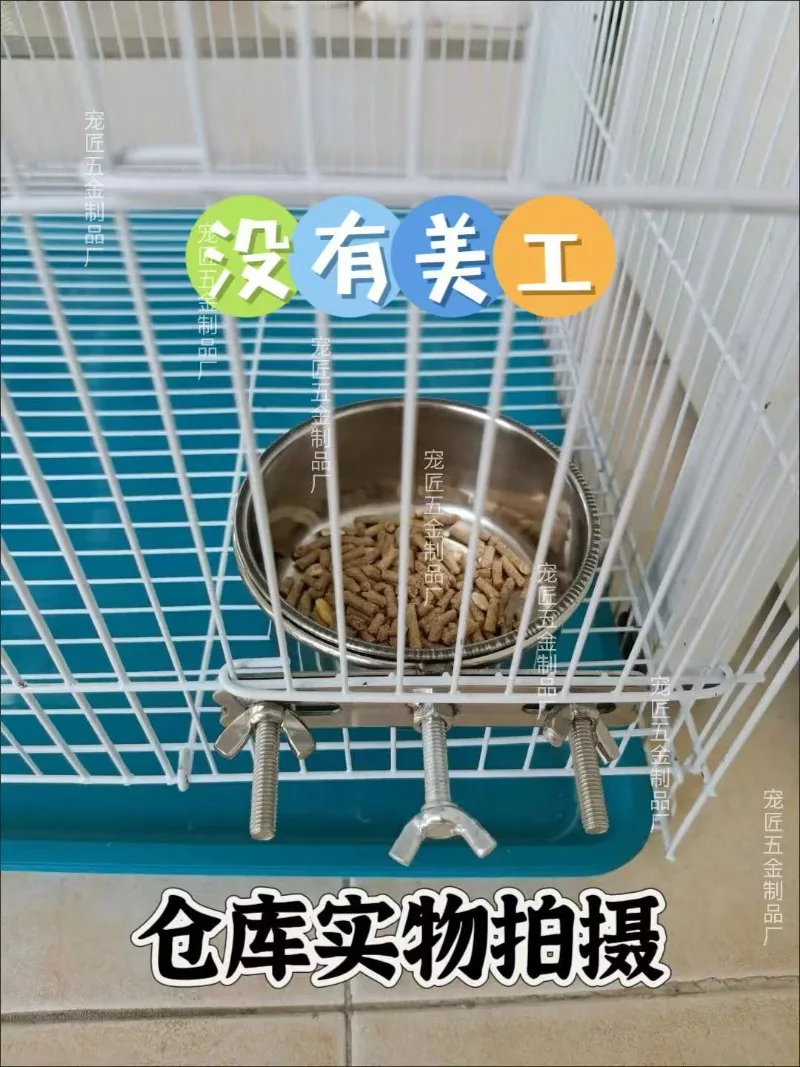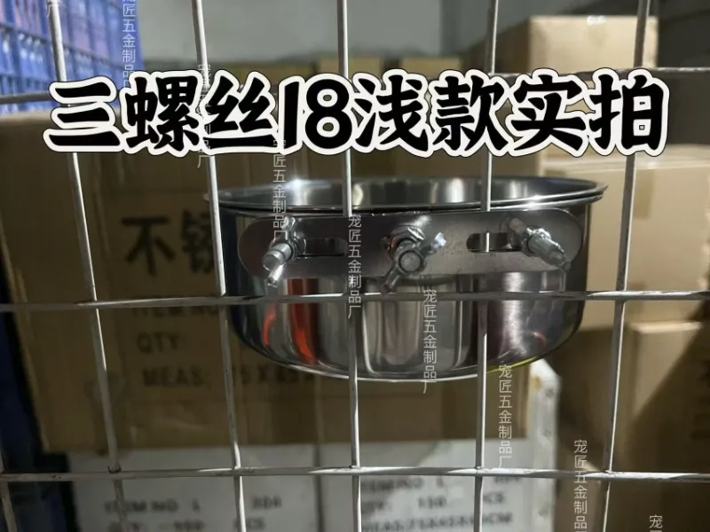Cuenco de comida de acero inoxidable para mascotas, fácil limpieza, lata gruesa profunda, tornillos fijos, jaula colgante, cuenco de agua antideslizante para mascotas, accesorios de alimentación