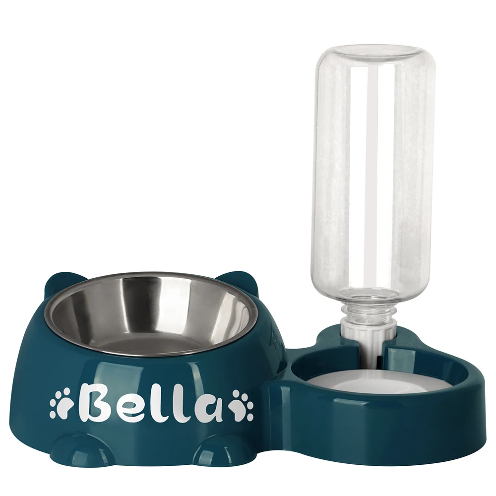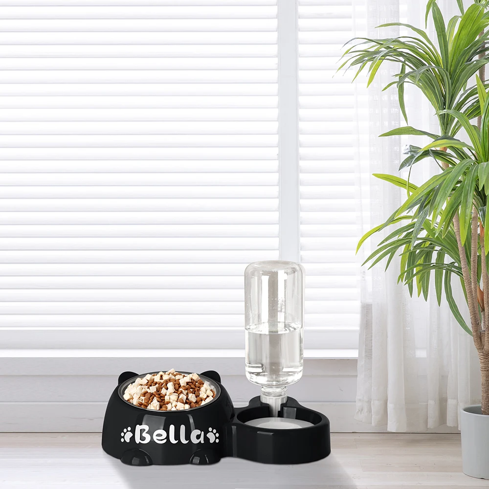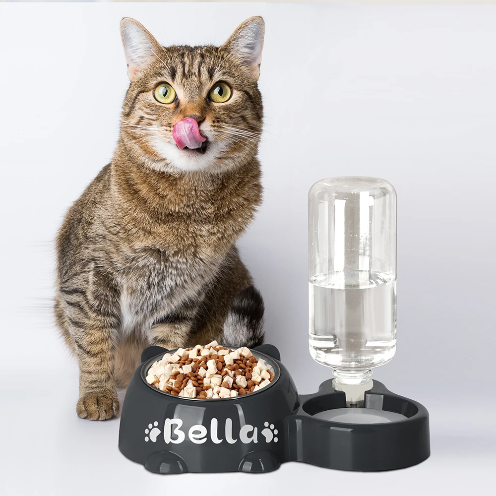 Cuenco de comida personalizado para gatos con botella de agua automática, alimentador de gatos con nombre impreso, dispensador para beber mascotas, tazones de comida de acero inoxidable