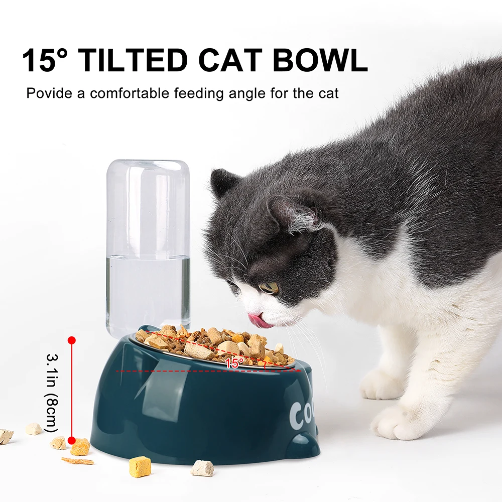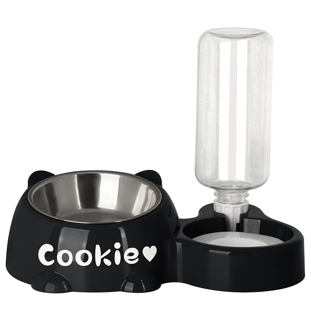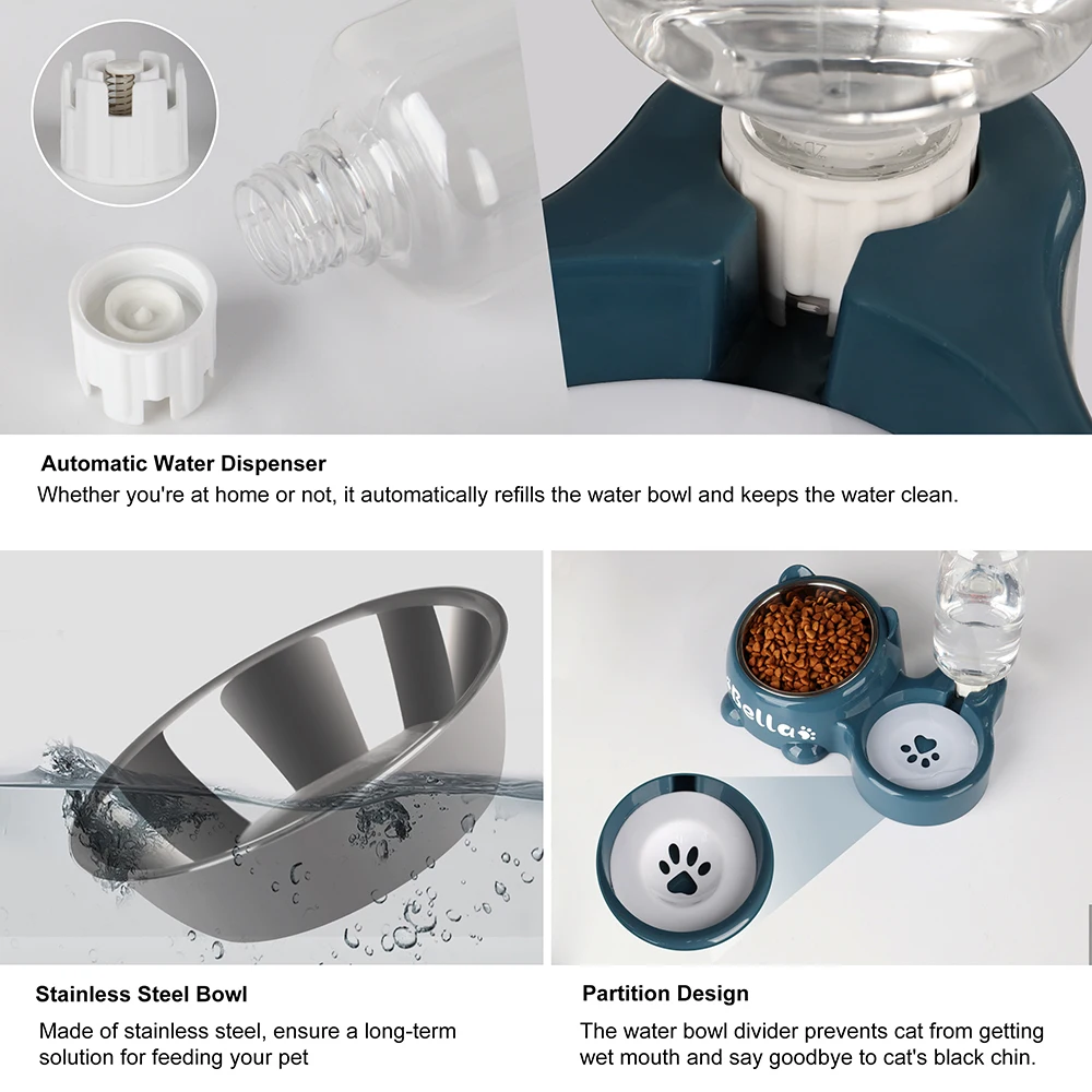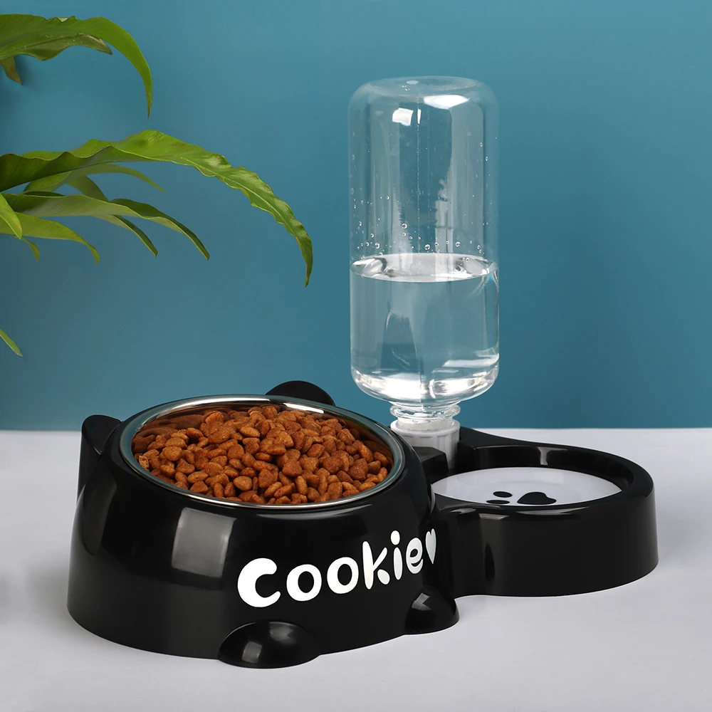 Cuenco de comida personalizado para gatos con botella de agua automática, alimentador de gatos con nombre impreso, dispensador para beber mascotas, tazones de comida de acero inoxidable