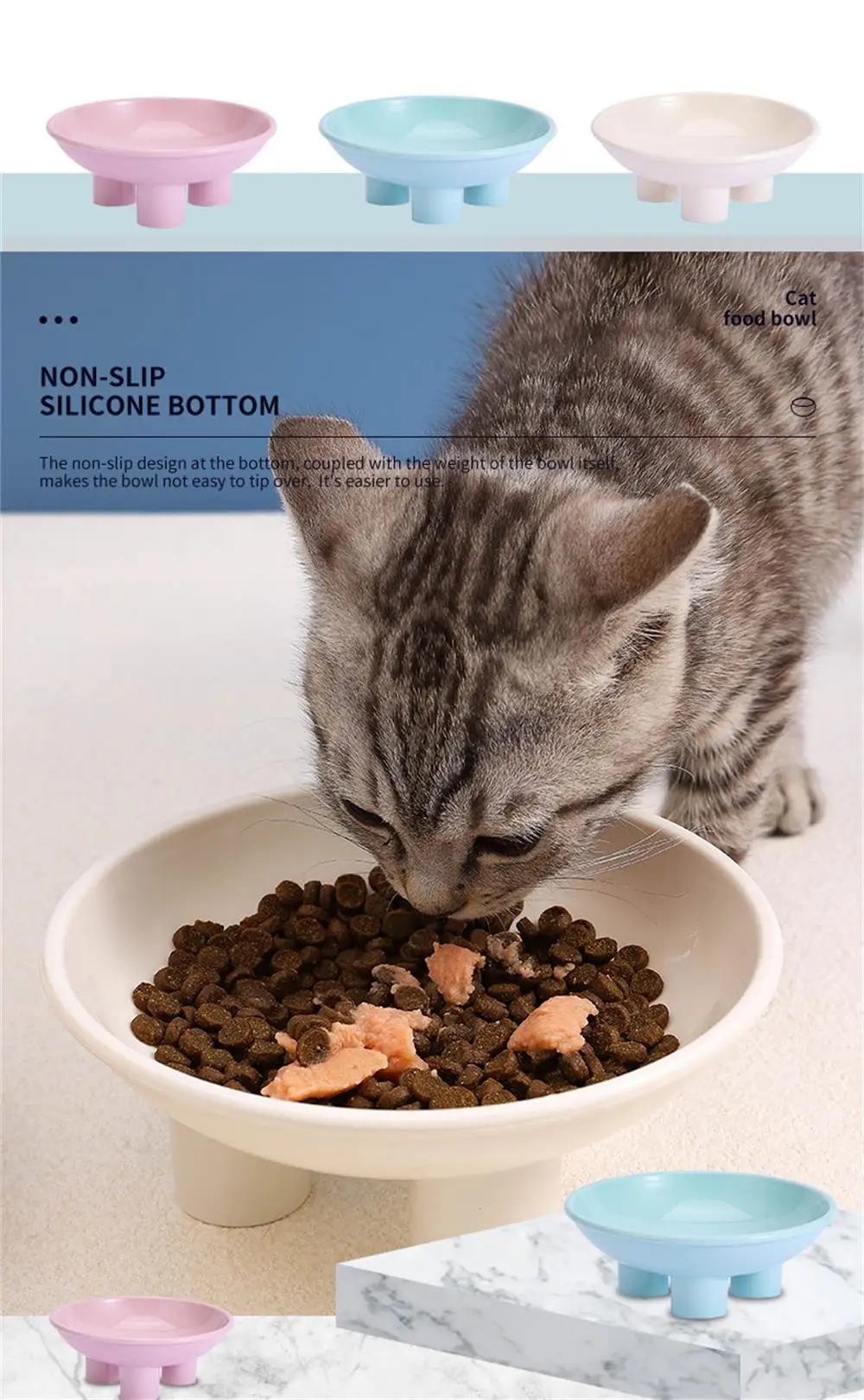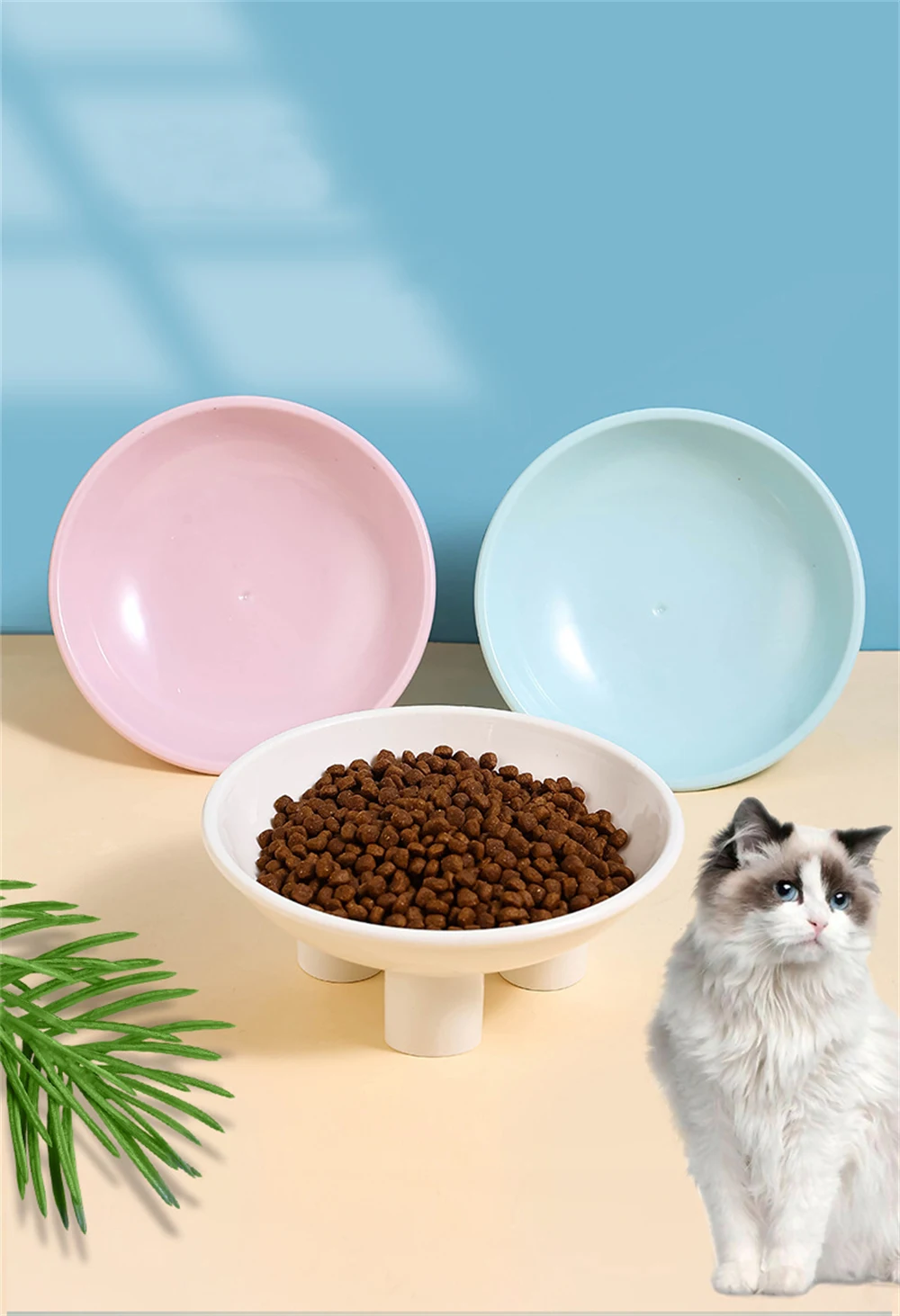 Cuenco de comida para gatos, Protector de cuello alto de fondo, platos de alimentación para mascotas, alimentador para gatitos, protege las vértebras cervicales, cuencos individuales de gran apertura