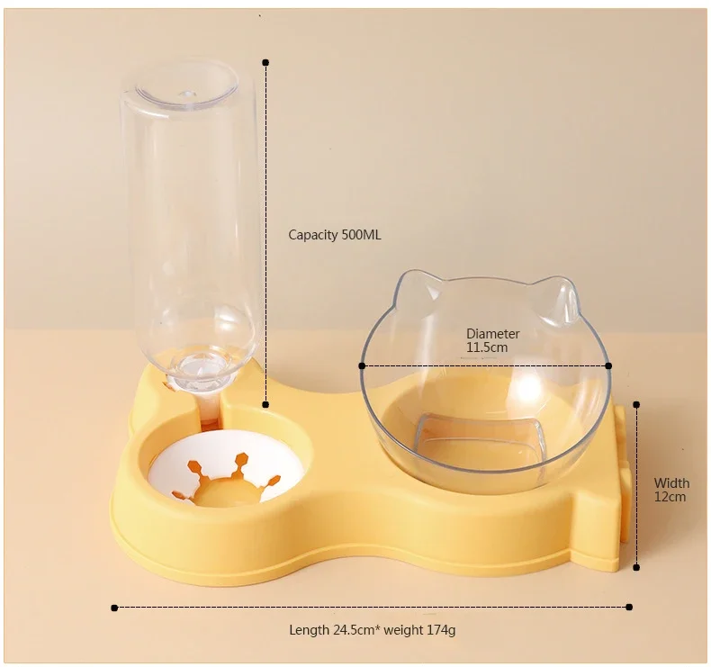 Cuenco de comida para gatos y perros, Alimentador automático, empalme todo en uno, fuente para beber, plato elevado de pie