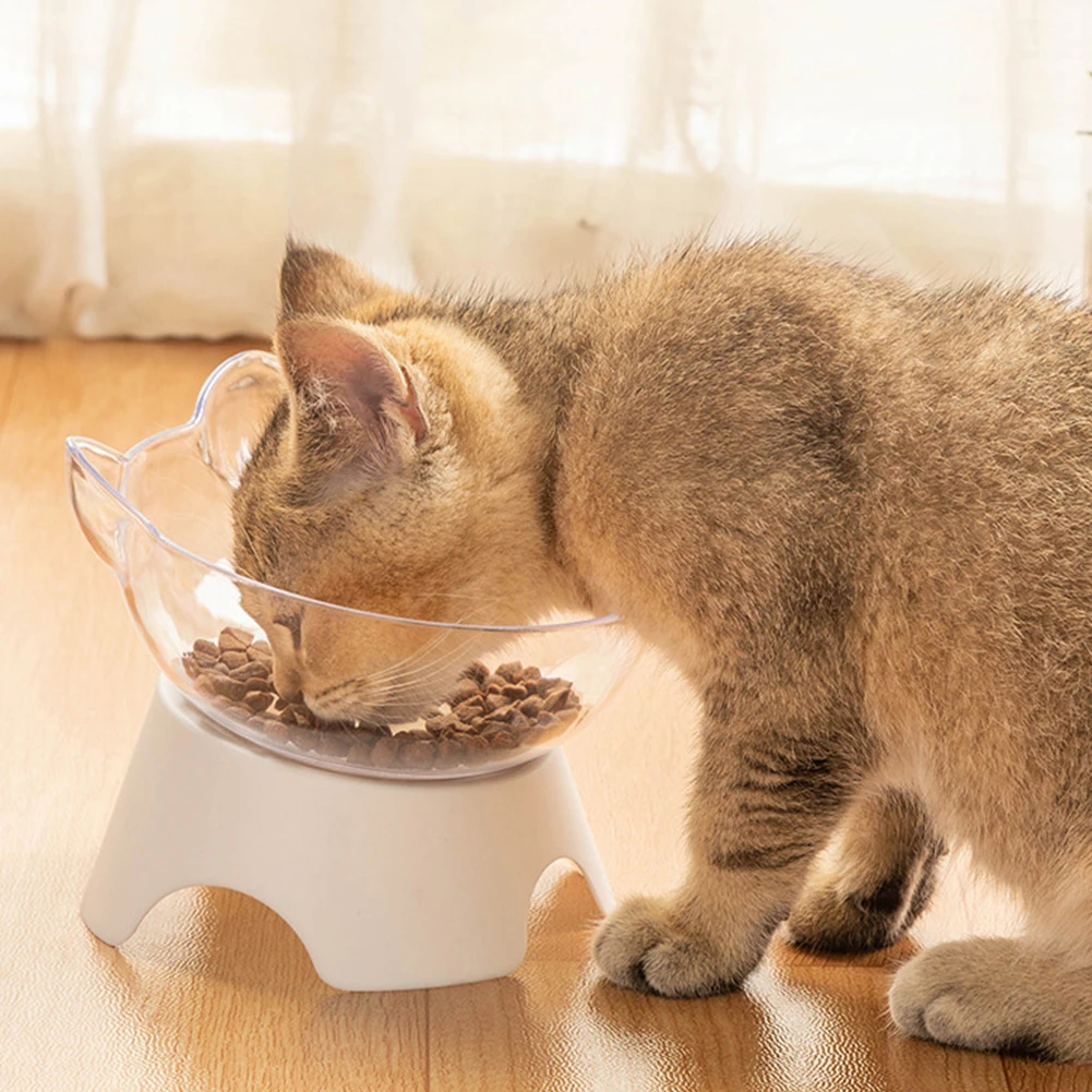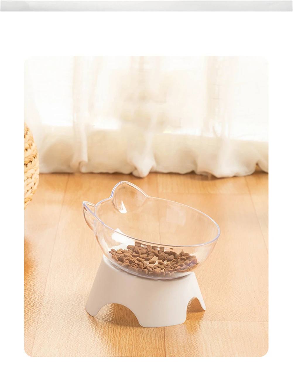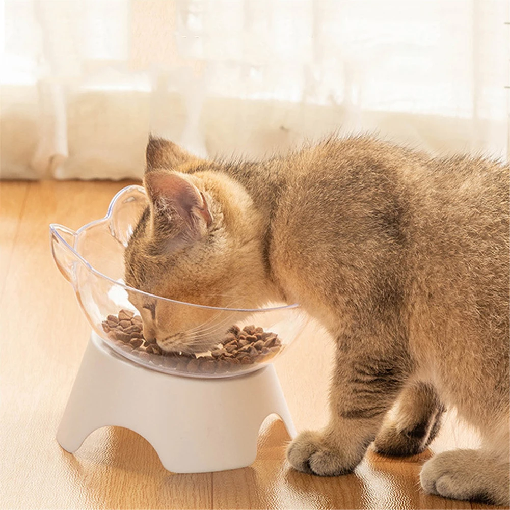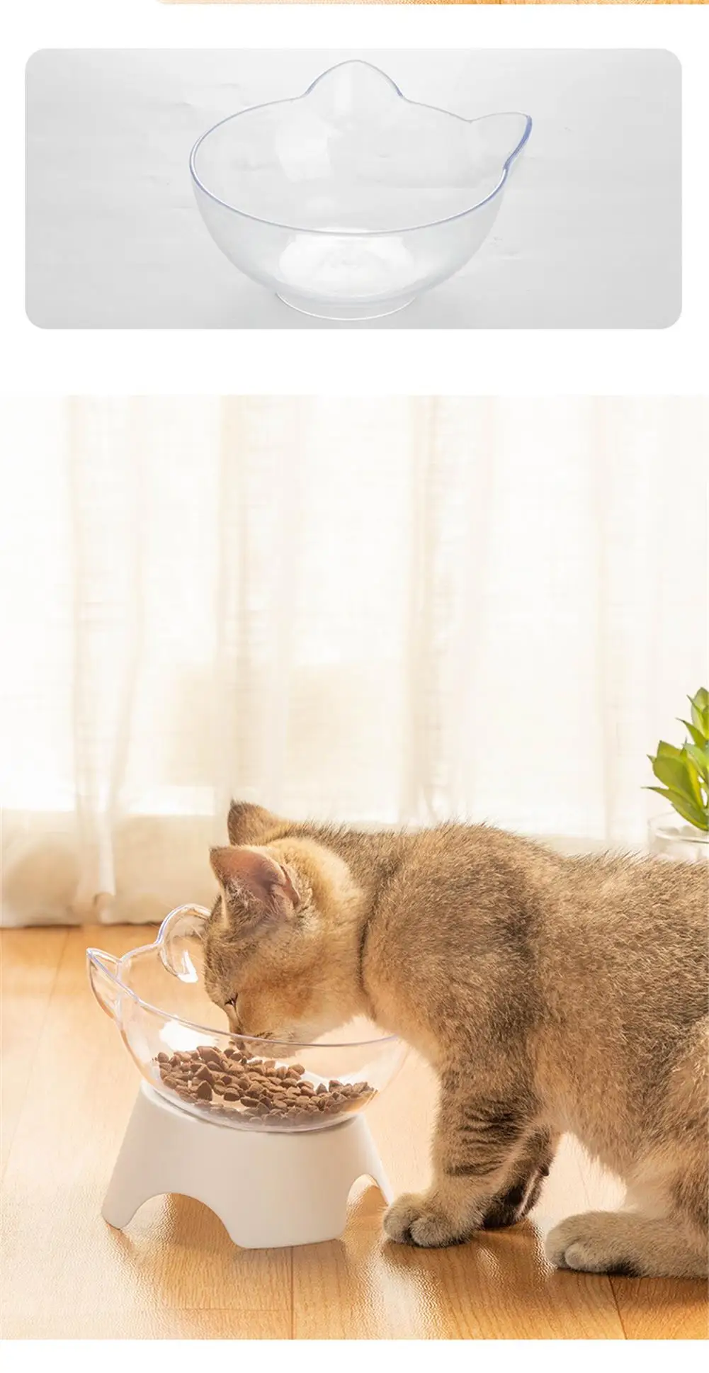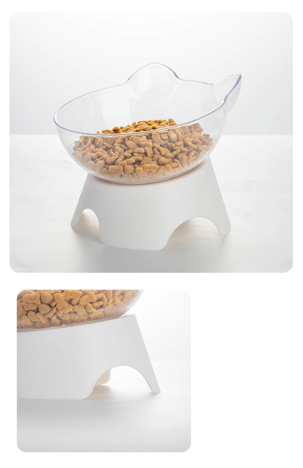 Tazón de comida individual inclinado para mascotas con cuello de protección para gatos, soporte elevado para perros, plato de agua para bebidas, alimentador antideslizante de plástico para mascotas, contenedor de alimentación