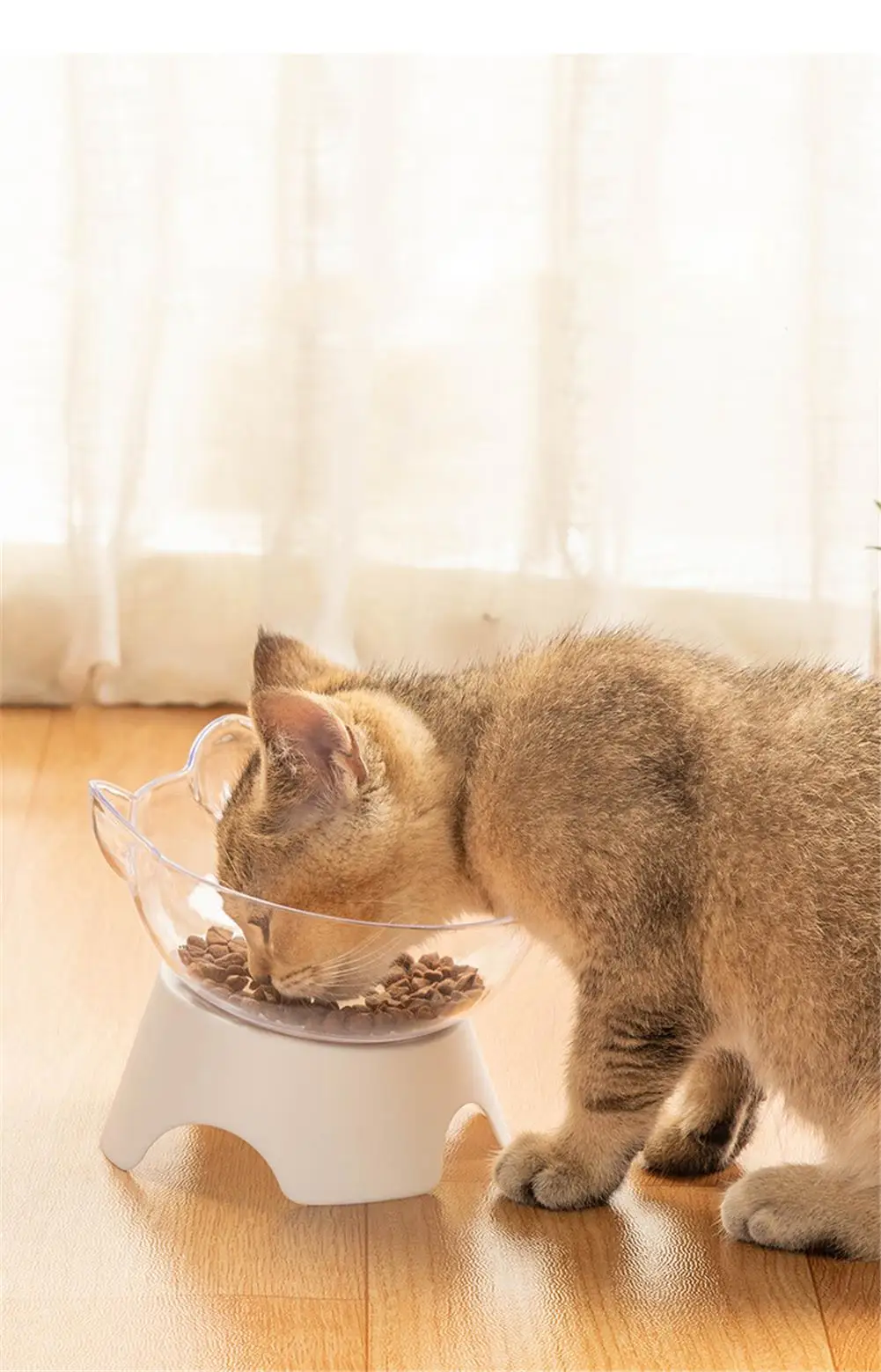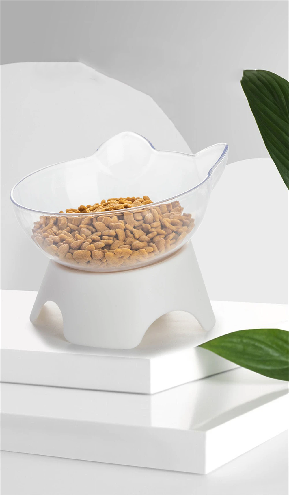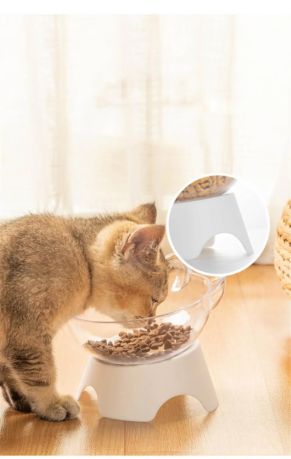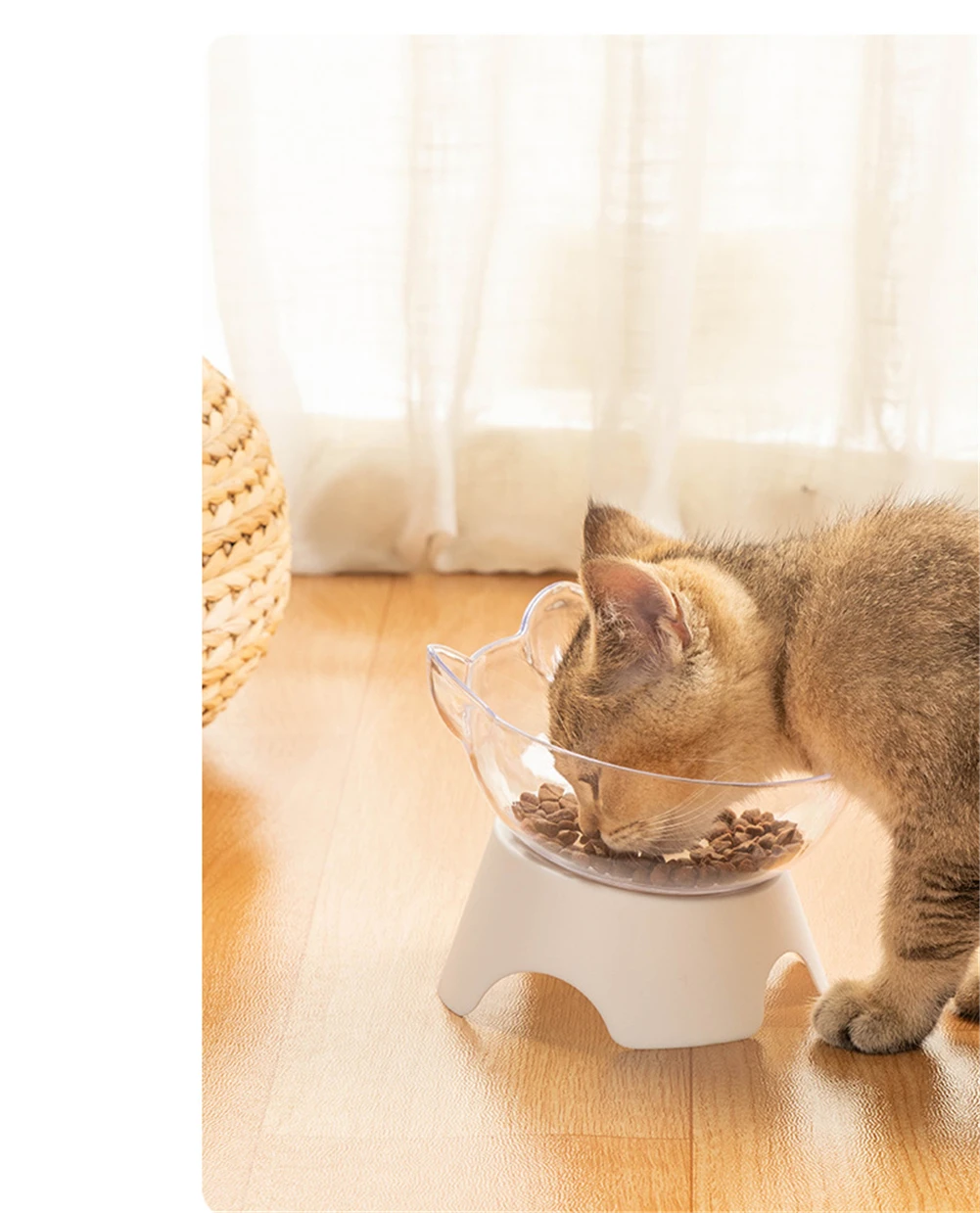 Tazón de comida individual inclinado para mascotas con cuello de protección para gatos, soporte elevado para perros, plato de agua para bebidas, alimentador antideslizante de plástico para mascotas, contenedor de alimentación