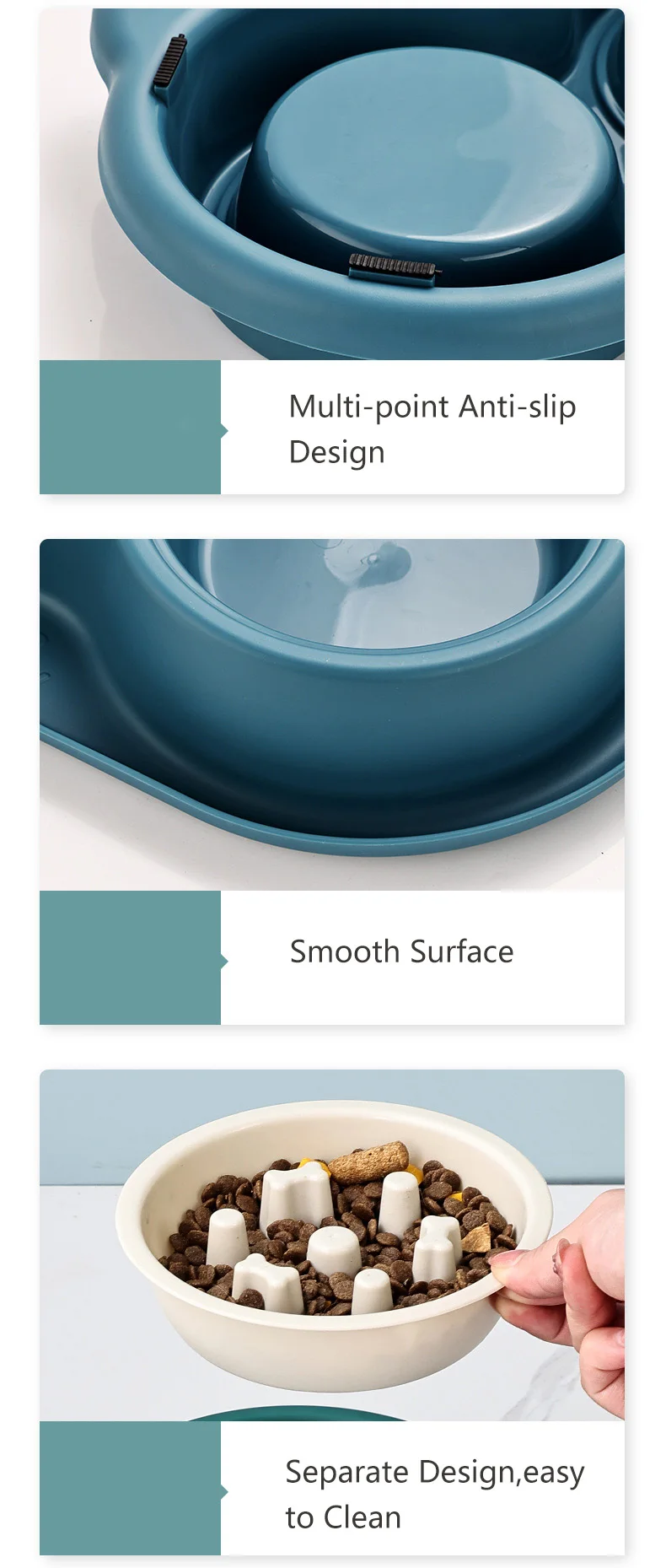 2. El diseño de la columna de comida lenta ralentiza la velocidad de alimentación de la mascota y previene eficazmente la asfixia.