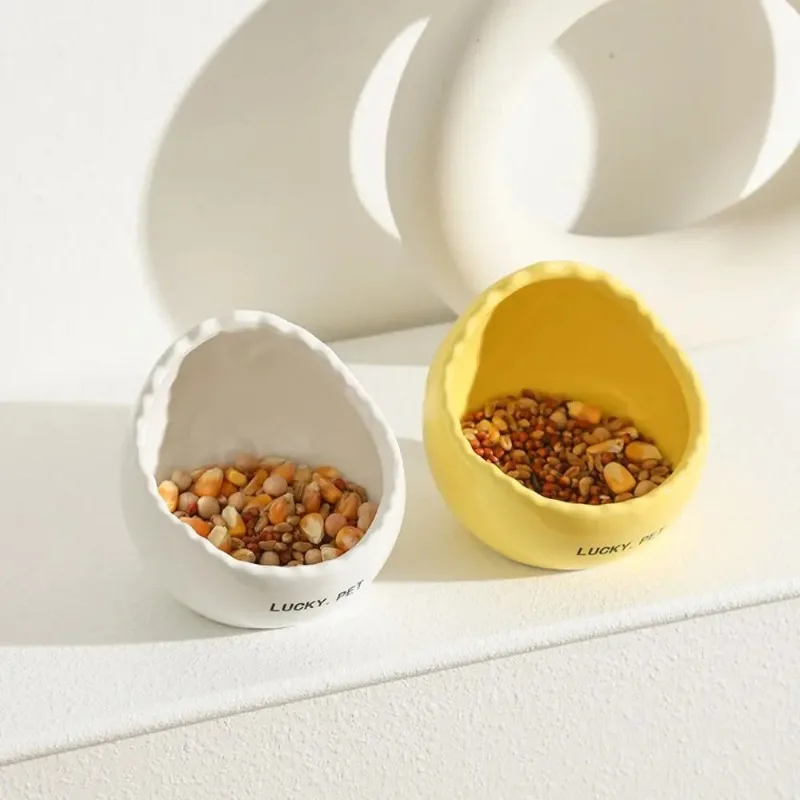 Cuenco de comida para pájaros con forma de huevo para loros, alimentador impermeable de cerámica, cuenco para pájaros, contenedor de comida para pájaros creativo y bonito