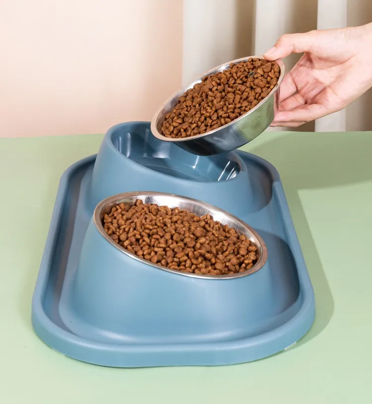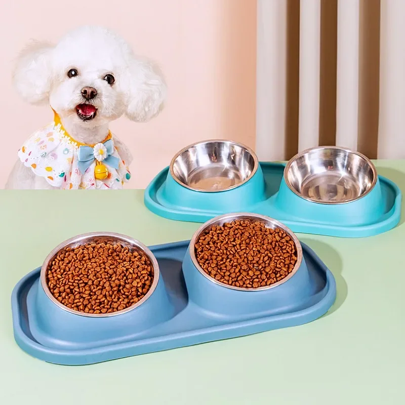 Cuenco de comida para perros, Protector de cuello, cuenco de agua para perros, cuencos dobles desmontables para alimentación de perros, cuencos de comida para gatos de acero inoxidable, suministros para mascotas