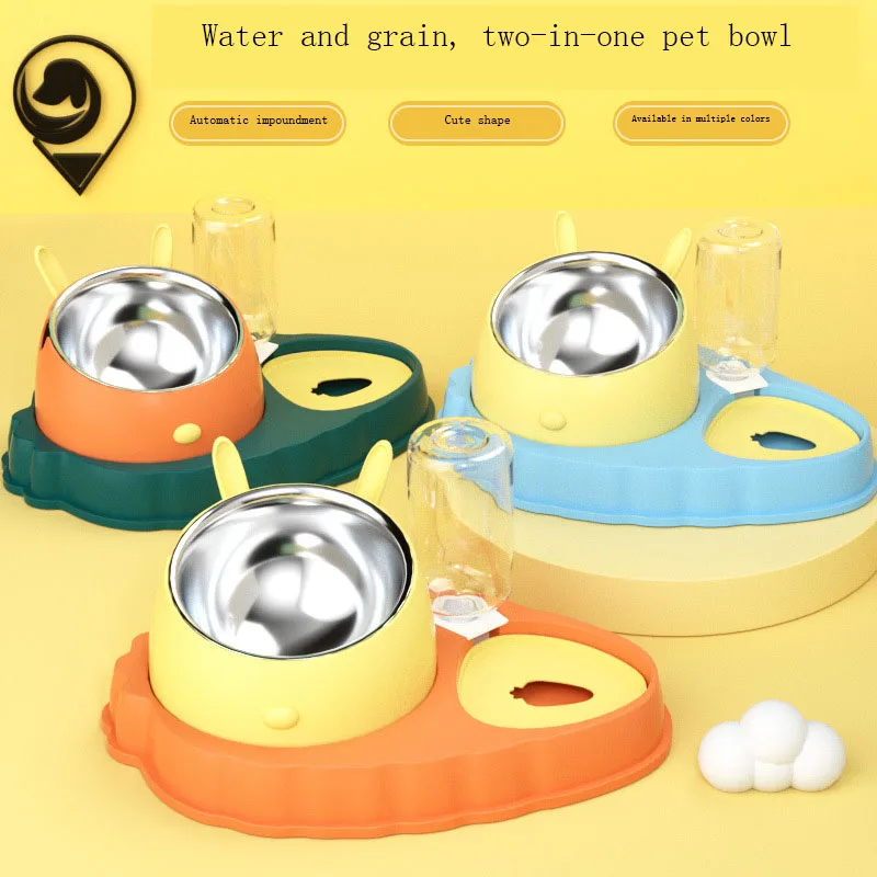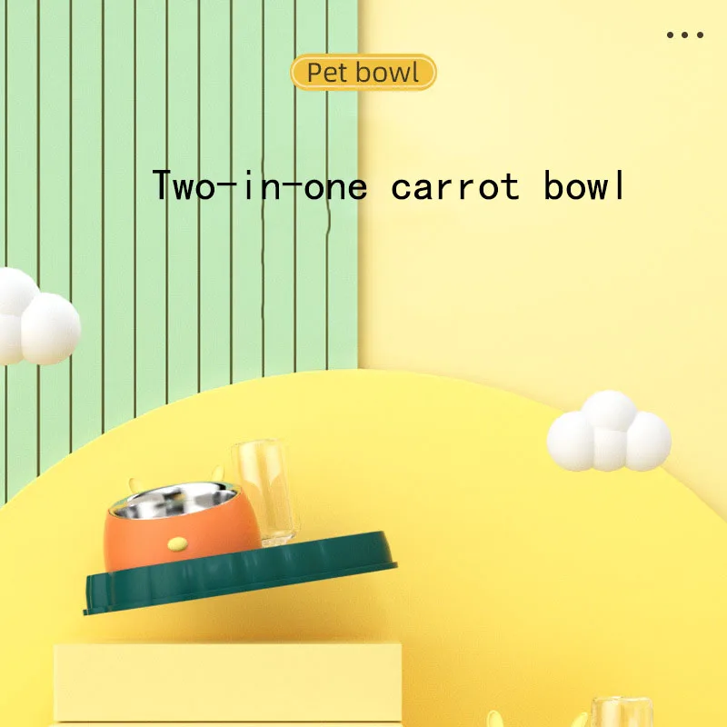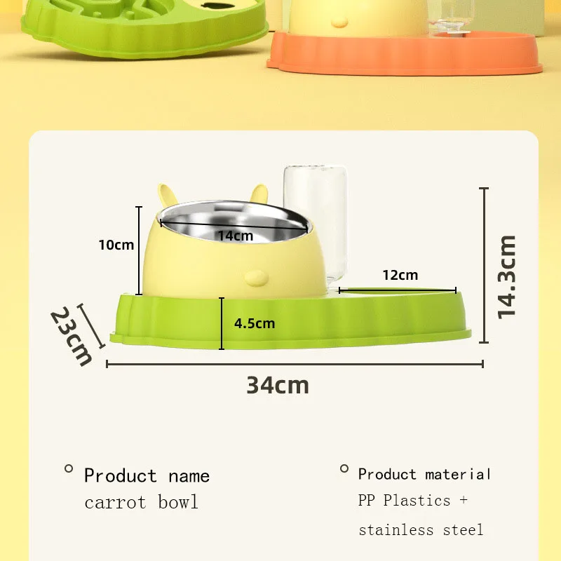 Bol doble para alimentación de mascotas, de acero inoxidable, con forma de zanahoria, antideslizante, antiasfixia, cuenco para perros, dispensador automático de agua para gatos