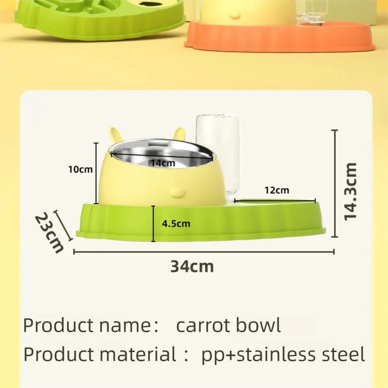 Cuenco para mascotas con forma de zanahoria 2 en 1, cuencos de agua de comida para perros y gatos de acero inoxidable, alimentador lento antisalpicaduras, Base antideslizante para cachorros y gatitos