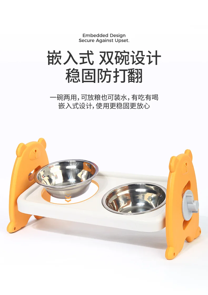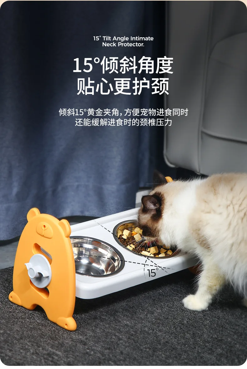 Cuenco doble con ajuste de altura para mascotas, protege el cuello, suministros para mascotas, cuenco inclinado de 15 °