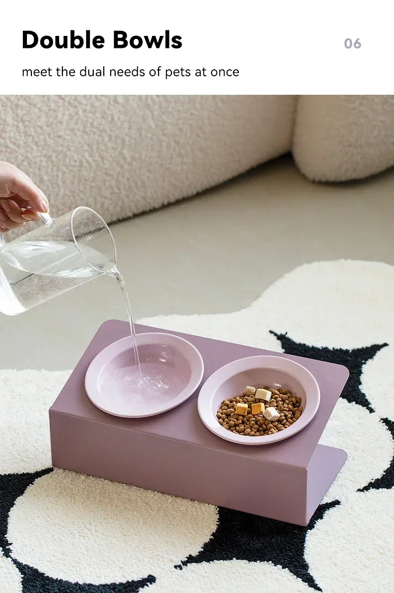Cuenco doble de cerámica con soporte de hierro para mascotas, cuencos de agua y comida elevada para perros pequeños, suministros de alimentación para beber