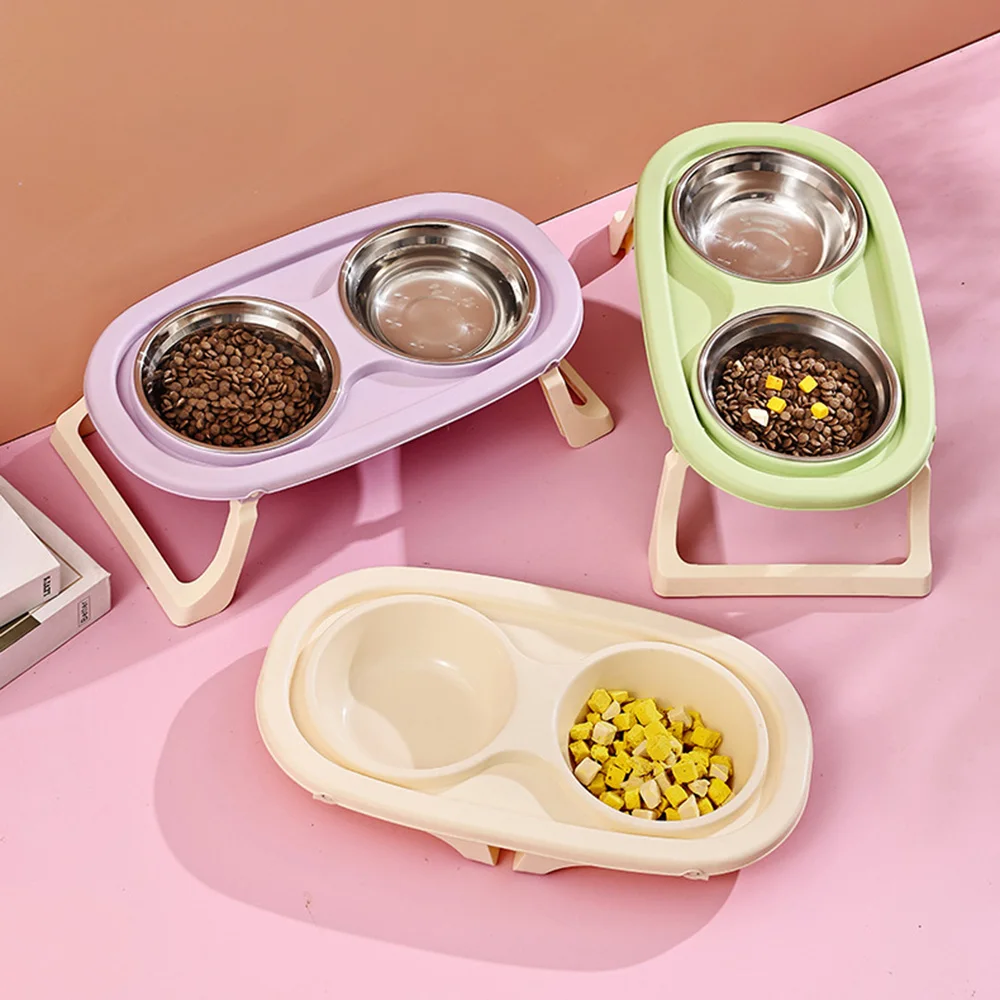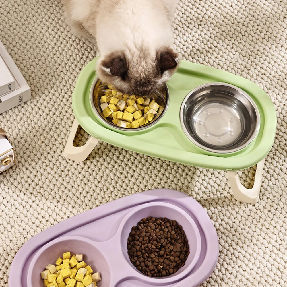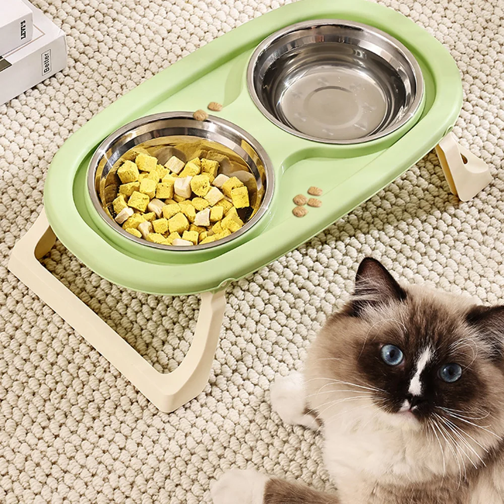 Cuenco doble para mascotas: diseño plegable elevado para gatos y perros, antiderrames, gran capacidad, cuenco de comida para gatos, plato de alimentación para perros
