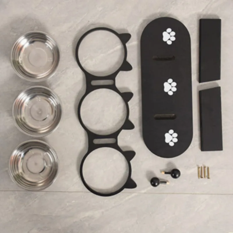 Comedero elevado para gatos de 3 niveles, madera y acero inoxidable, ángulo ajustable de 15 grados, 3 tazones para comida para mascotas con soportes de soporte, fácil montaje, portátil y desmontable para limpiar, ideal para varios gatos