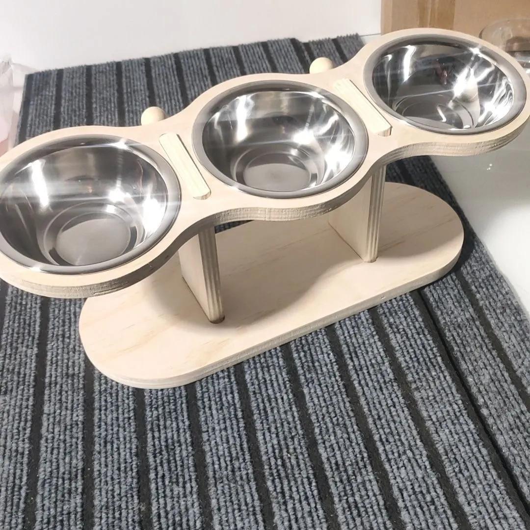 Cuenco elevado para gatos de 3 niveles con soportes de soporte, cuenco de comida para mascotas inclinado con soporte de ángulo ajustable de madera y acero inoxidable de 15 grados - imagen 1