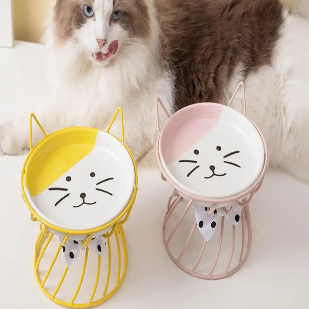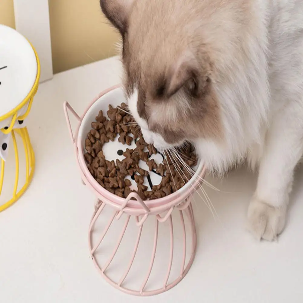 Soportes de metal elevado para mayor estilo y reducción de la carga en la columna cervical de su gato.