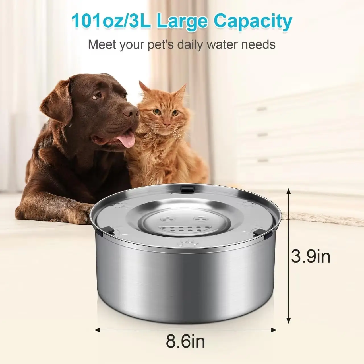 【Gran capacidad de 3L/101oz】Nuestro cuenco de agua para perros tiene un diseño patentado.Tiene capacidad para tazón de agua para perros de capacidad extra grande de 3 litros/101 oz, ideal para las necesidades diarias de bebida de perros pequeños, medianos y grandes y familias con múltiples mascotas sin necesidad de recargas frecuentes.Deja que tu mascota beba suficiente agua.