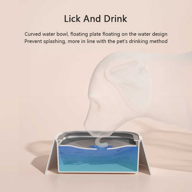 2. Alimentador de agua lento: el diseño de disco flotante ajustable automáticamente ralentiza la velocidad de bebida de su mascota. Cuando la lengua de su mascota toca el disco flotante, se hunde y el agua ondula.