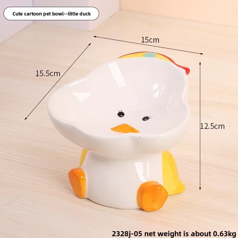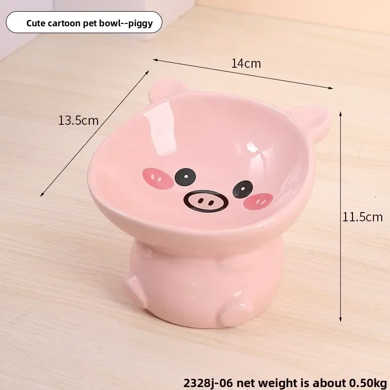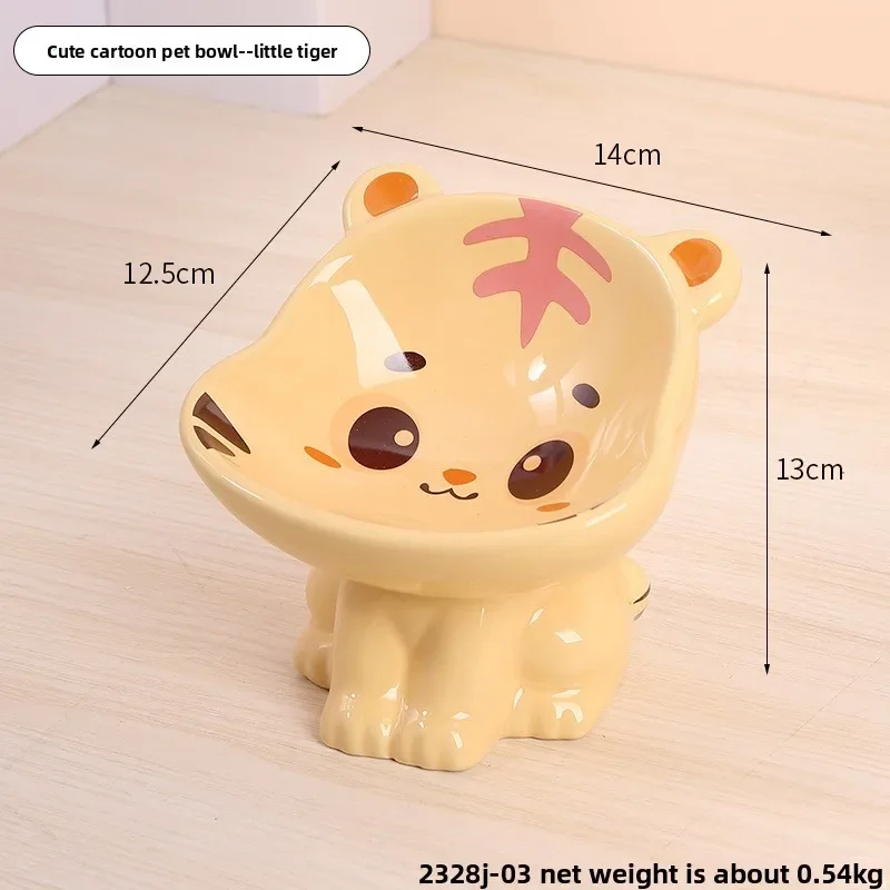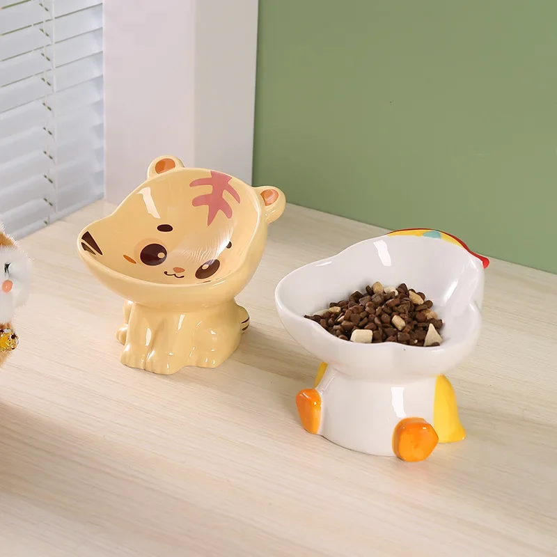 Cuenco para gatos con animales de dibujos animados, cuenco de comida para mascotas inclinado de cerámica, cuenco alto para comida para gatos antivuelco, cuenco para comida para perros y gatos que protege el cuello