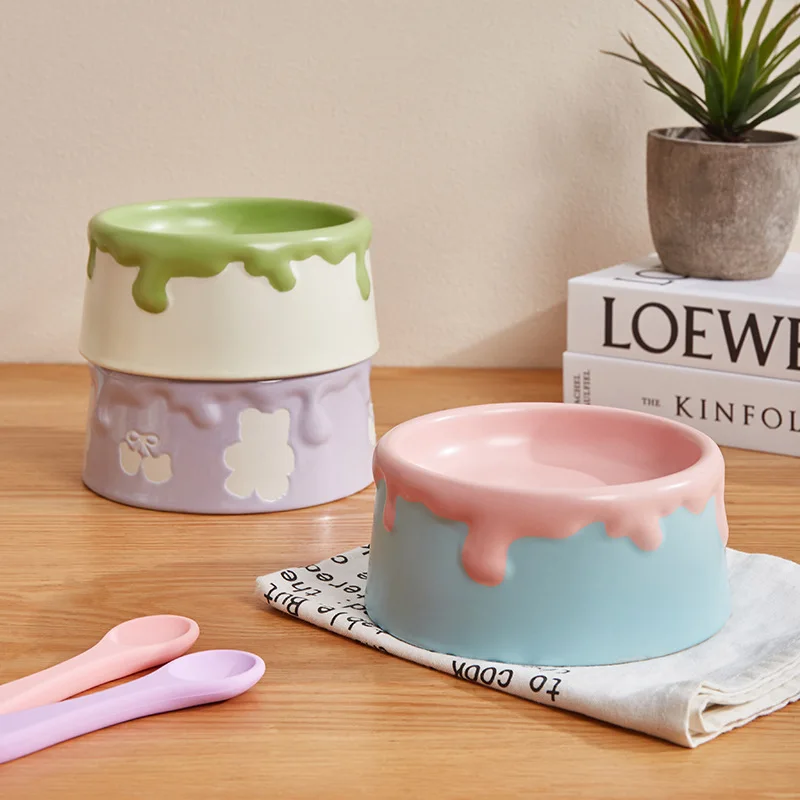 Cuenco para gatos, cuenco para beber de grano de cerámica bonito, cuencos para beber con alimentador de comida para mascotas antiobturación