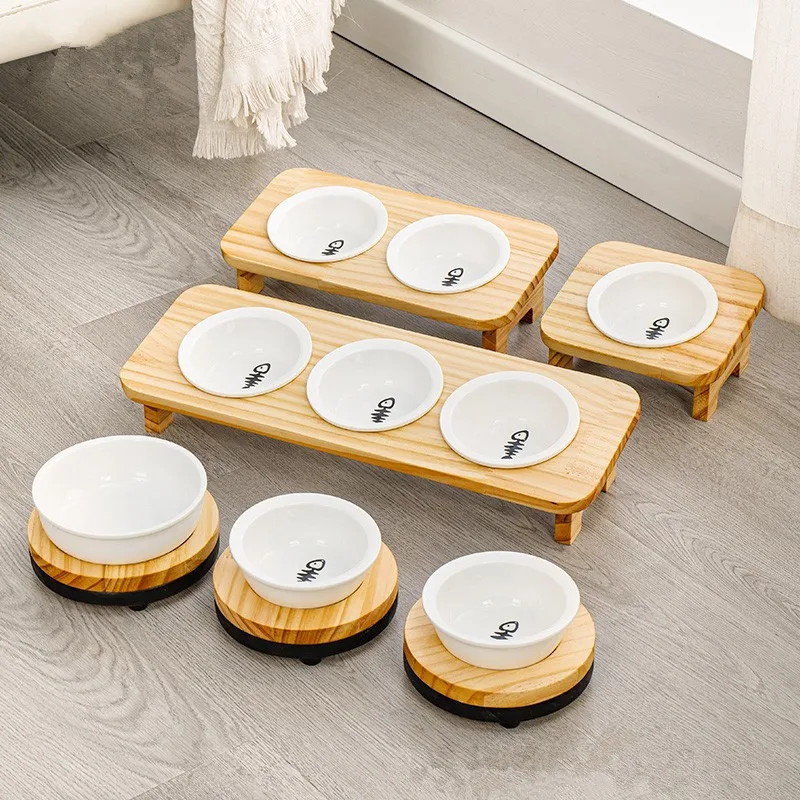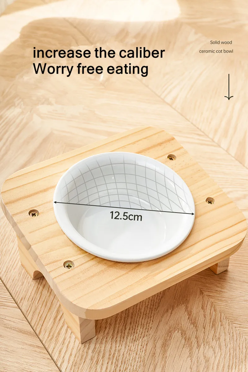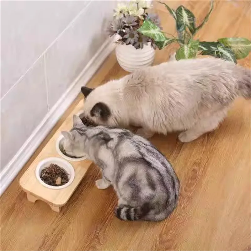 Cuenco para gatos, cuenco de comida para gatos, boca inclinada, cuencos de agua para gatos, alimentador de cerámica para perros, cuencos antigolpes de madera maciza para gatos, suministros para mascotas