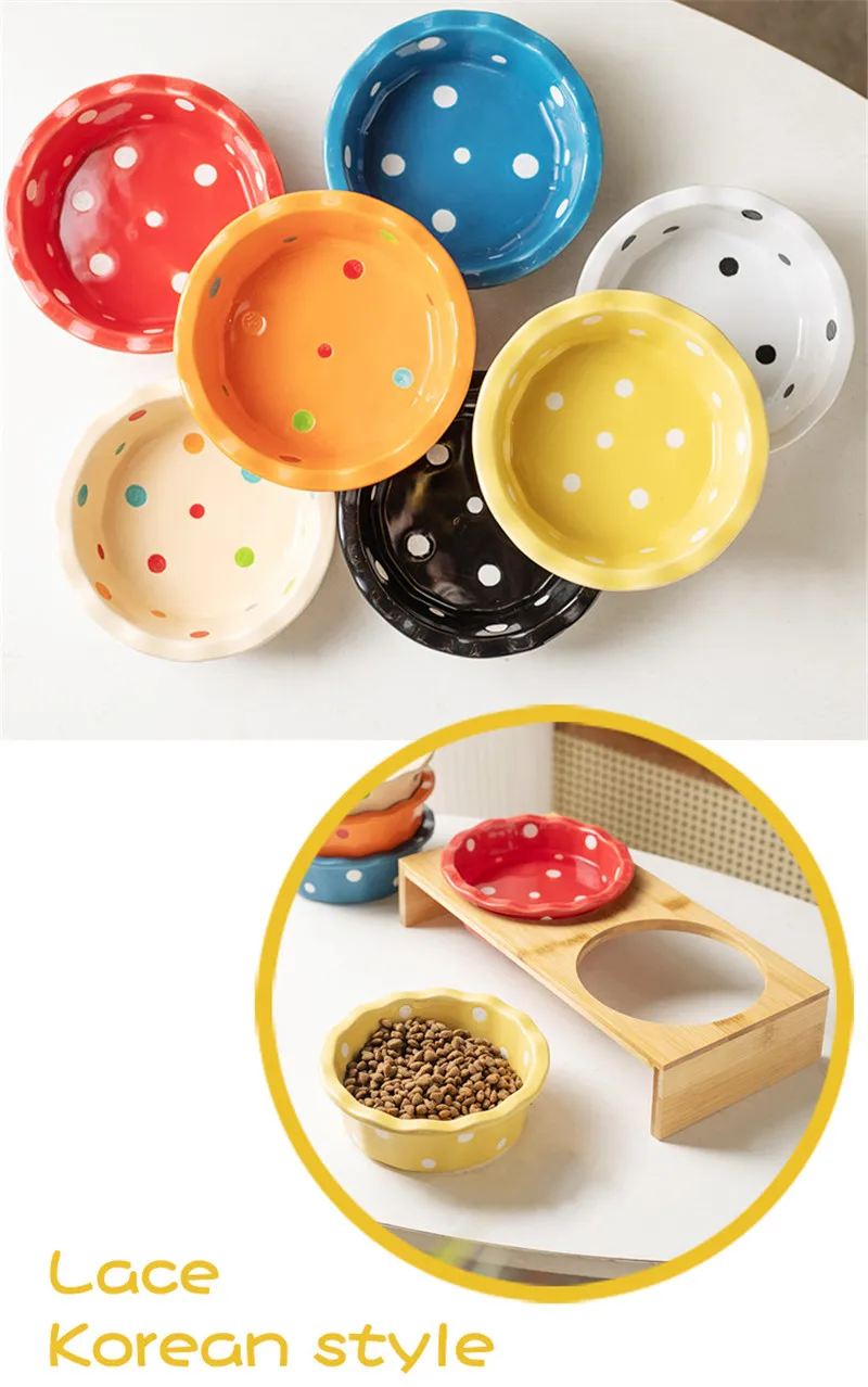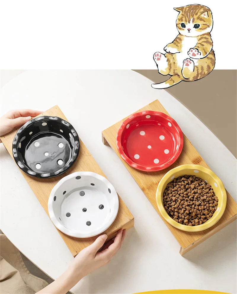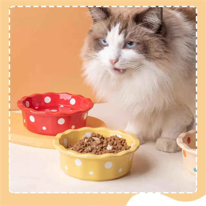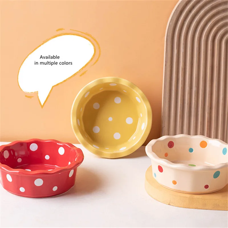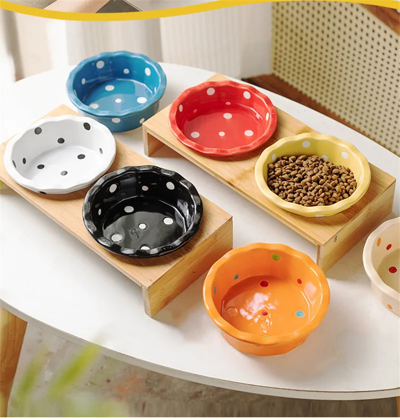 Cuenco para gatos con diseños de puntos a la moda, cuenco de cerámica para mascotas, alimentador de comida para gatos, cuencos de agua coloridos para perros pequeños, proveedores para mascotas