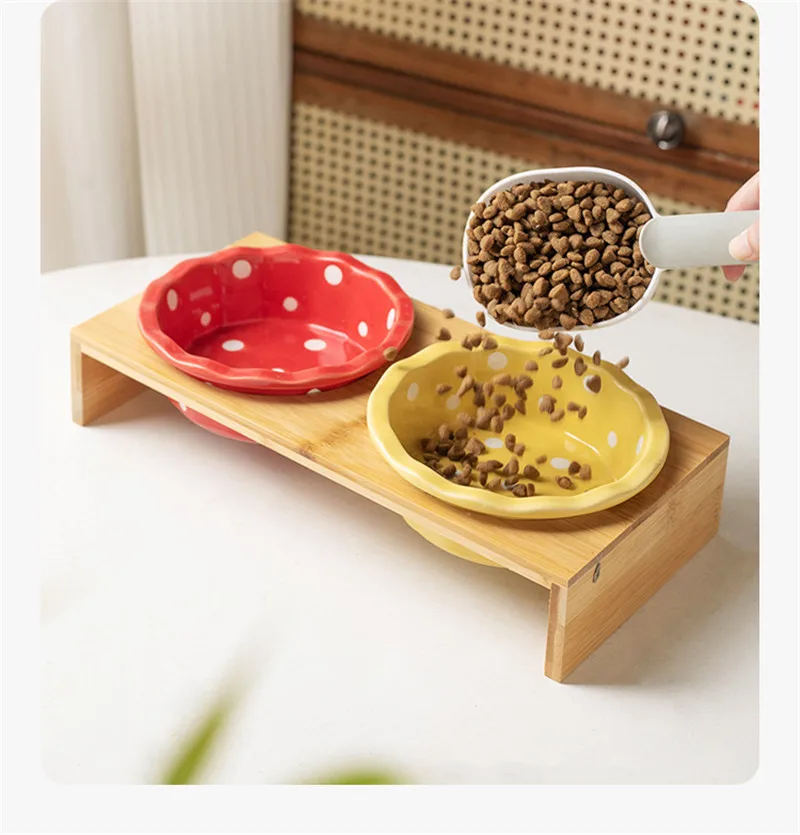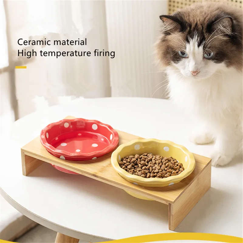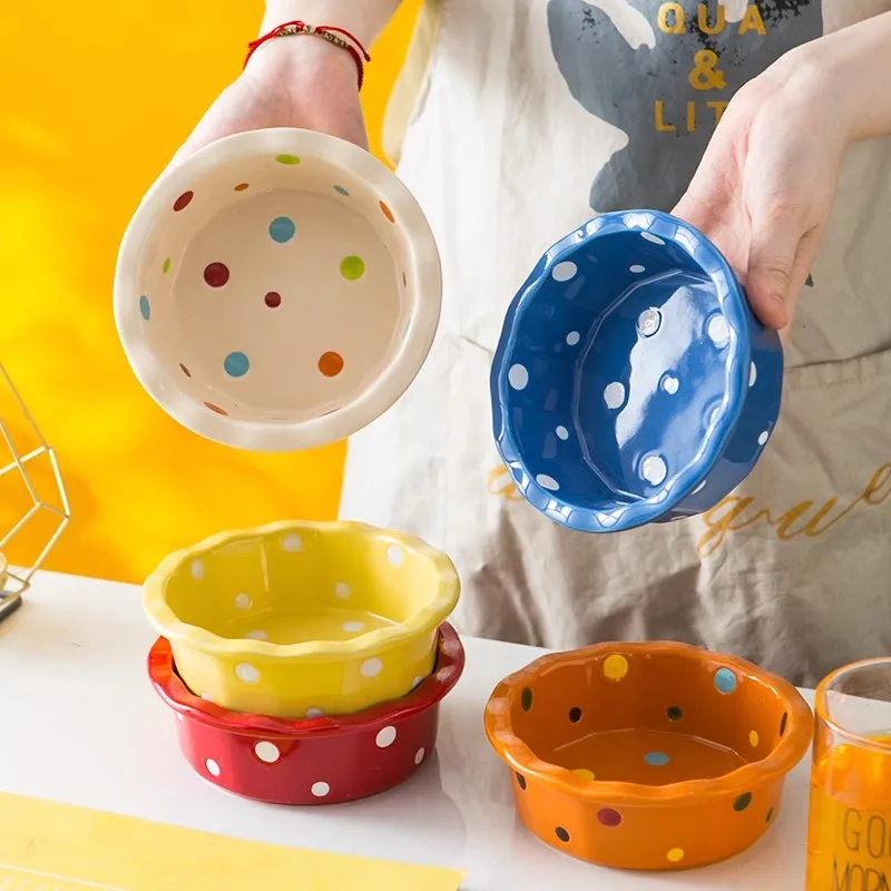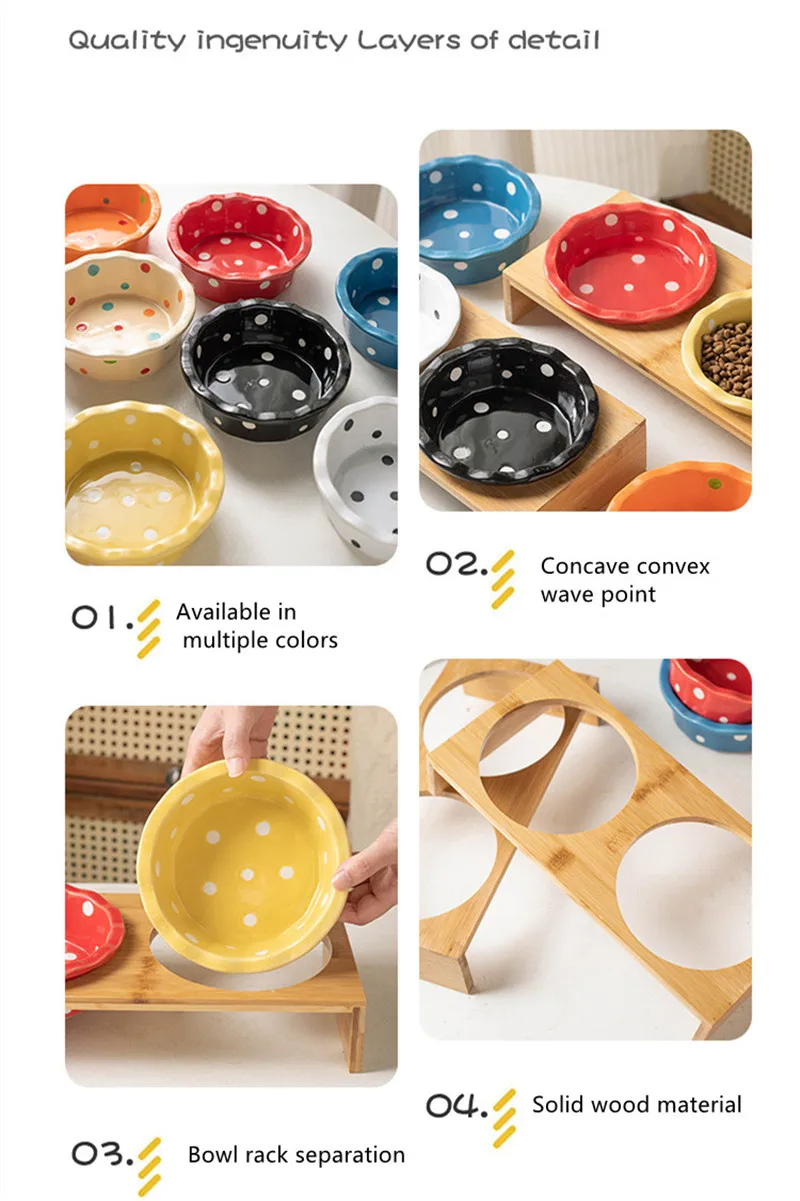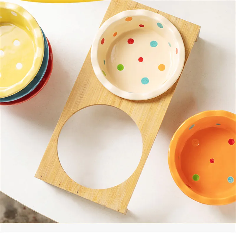 Cuenco para gatos con diseños de puntos a la moda, cuenco de cerámica para mascotas, alimentador de comida para gatos, cuencos de agua coloridos para perros pequeños, proveedores para mascotas