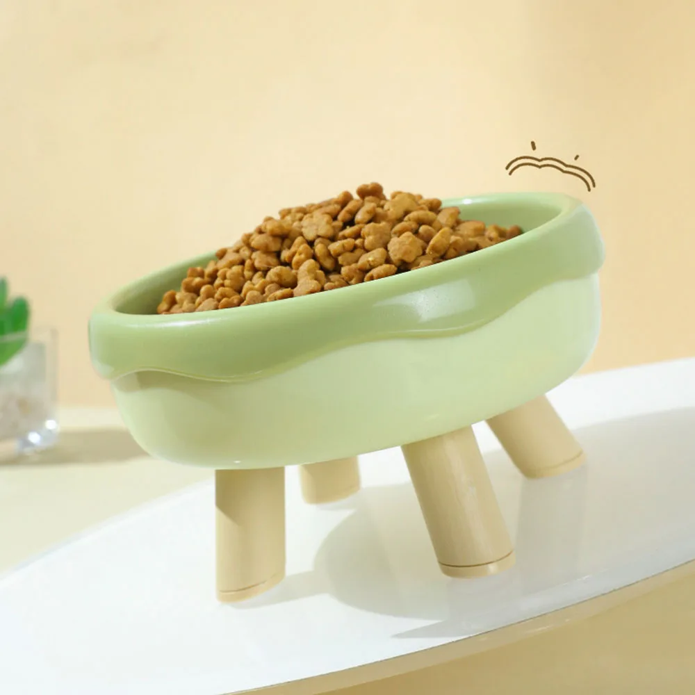 Cuenco para gatos con forma de donut de Color macarrón, plato de comida para gatos de boca plana de plástico elevado de 4 patas, cuenco de alimentación para mascotas para gatos, lindos suministros para mascotas
