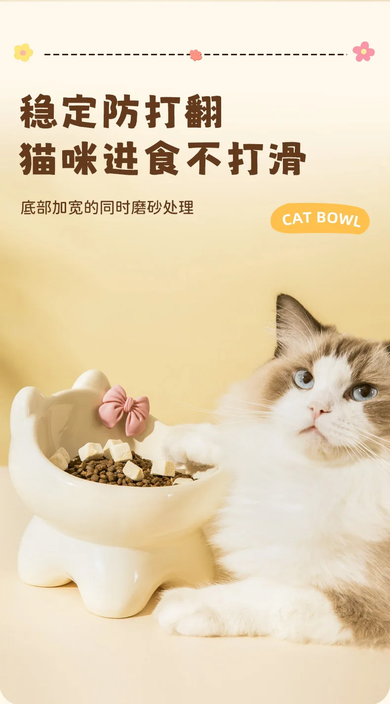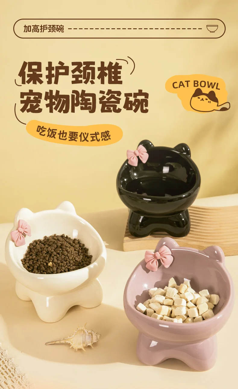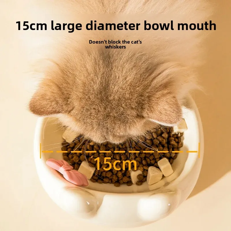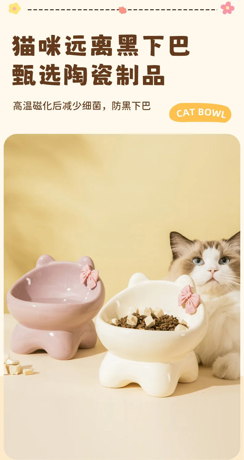 Cuenco para gatos, lavabo de comida para perros y gatos, cuenco oblicuo creativo bonito de cerámica para mascotas pequeñas y medianas, comida, arroz, agua potable, cuello, pie alto