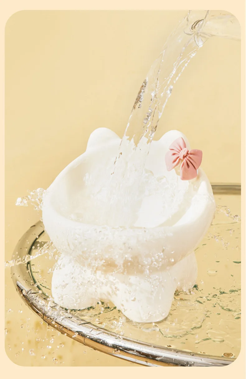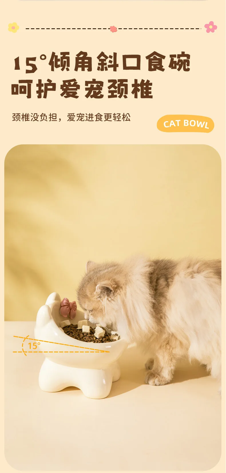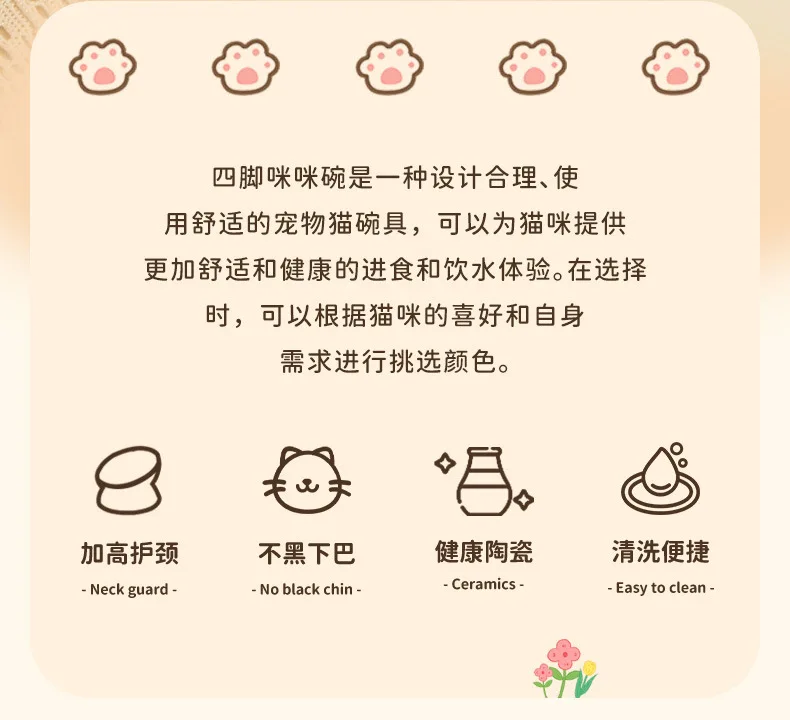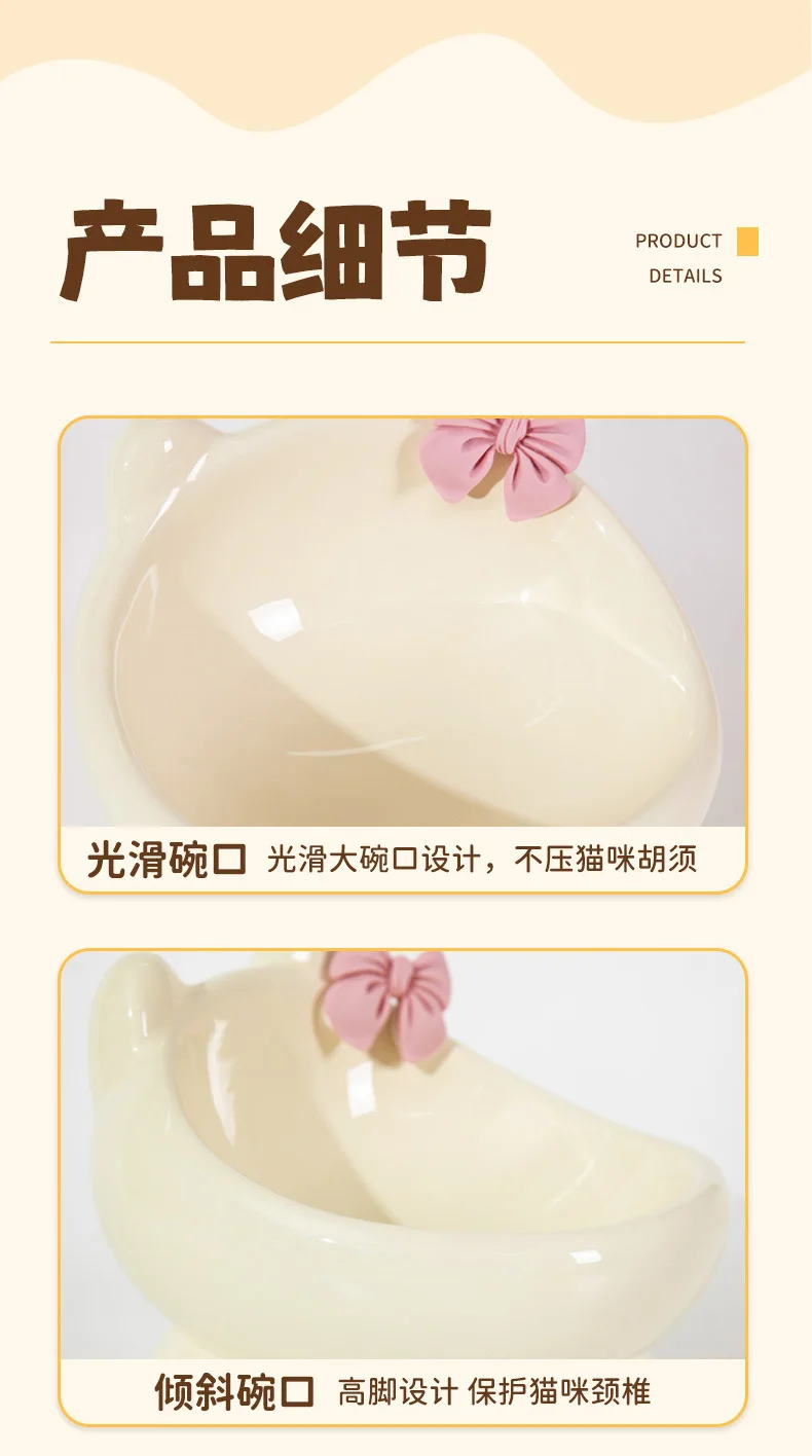 Cuenco para gatos, lavabo de comida para perros y gatos, cuenco oblicuo creativo bonito de cerámica para mascotas pequeñas y medianas, comida, arroz, agua potable, cuello, pie alto