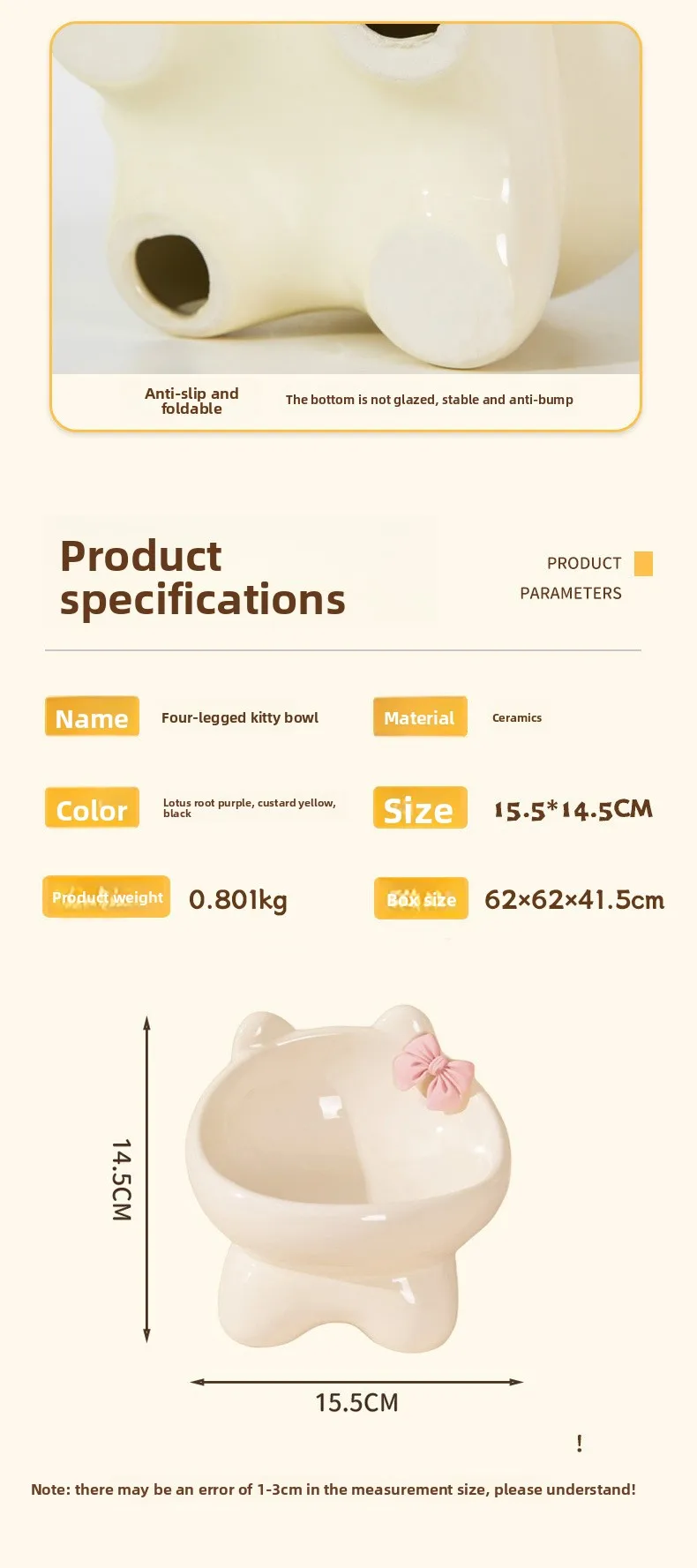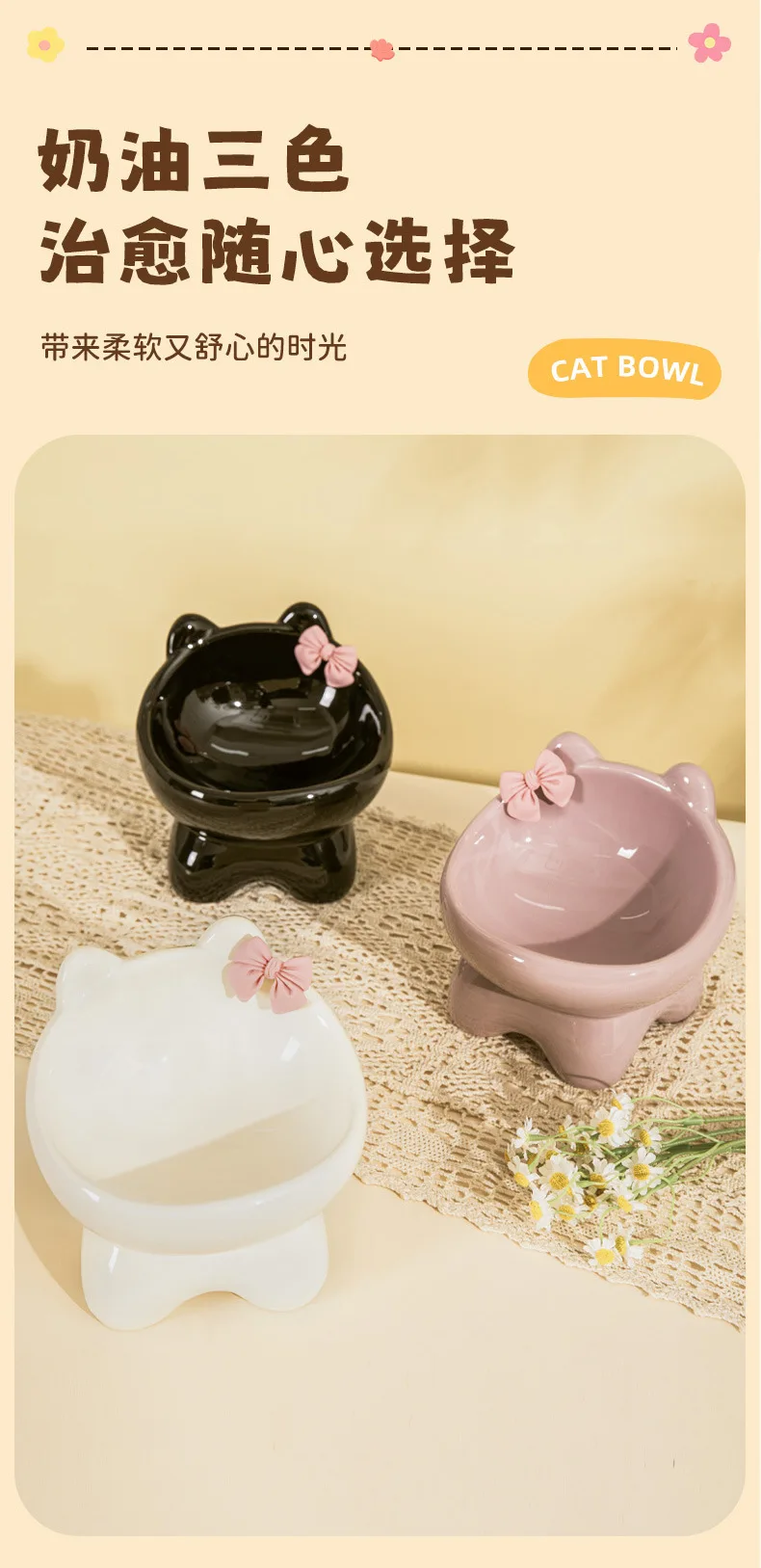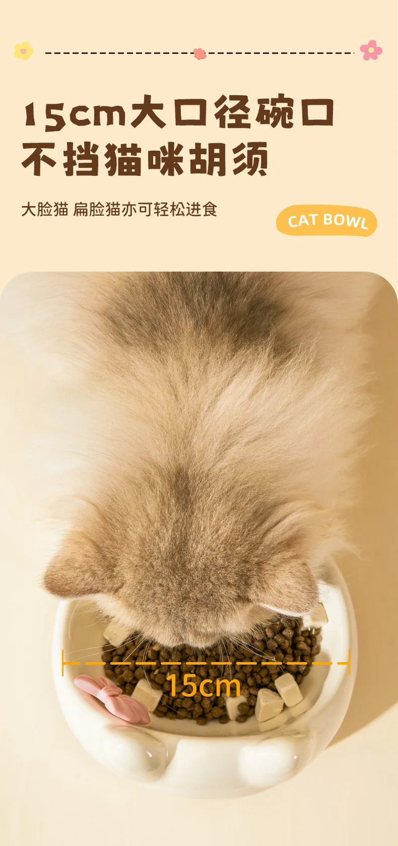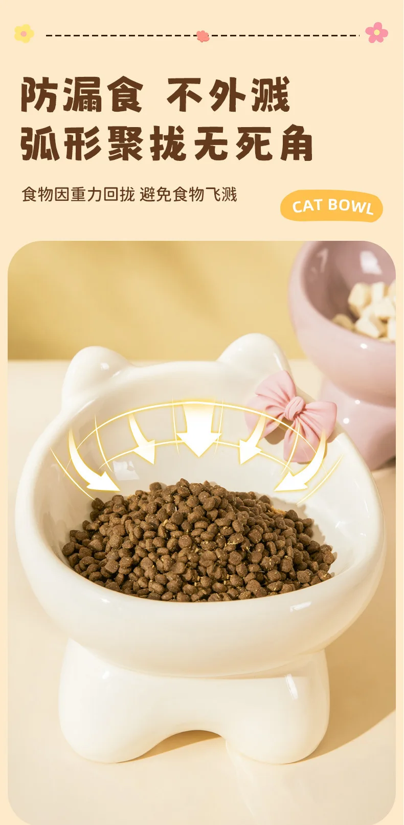 Cuenco para gatos, lavabo de comida para perros y gatos, cuenco oblicuo creativo bonito de cerámica para mascotas pequeñas y medianas, comida, arroz, agua potable, cuello, pie alto