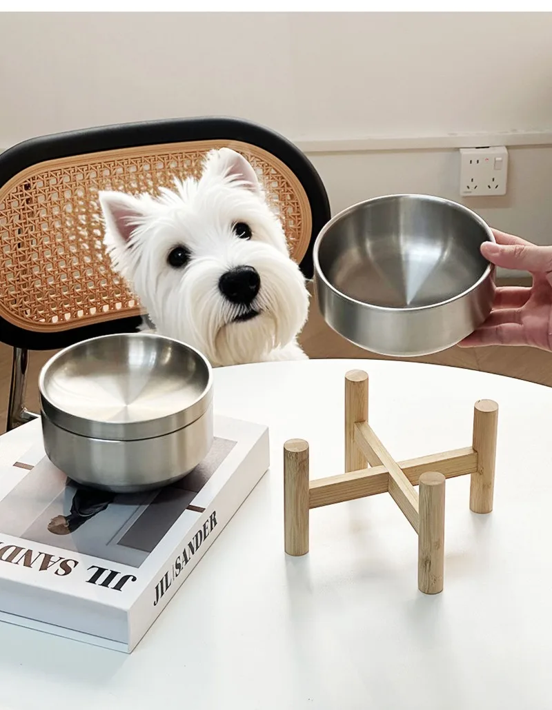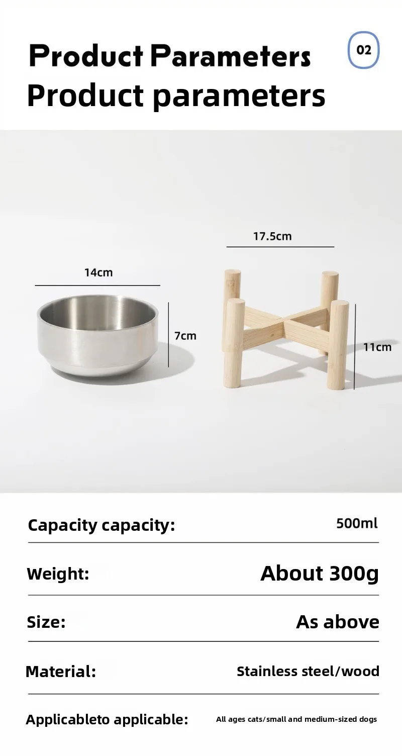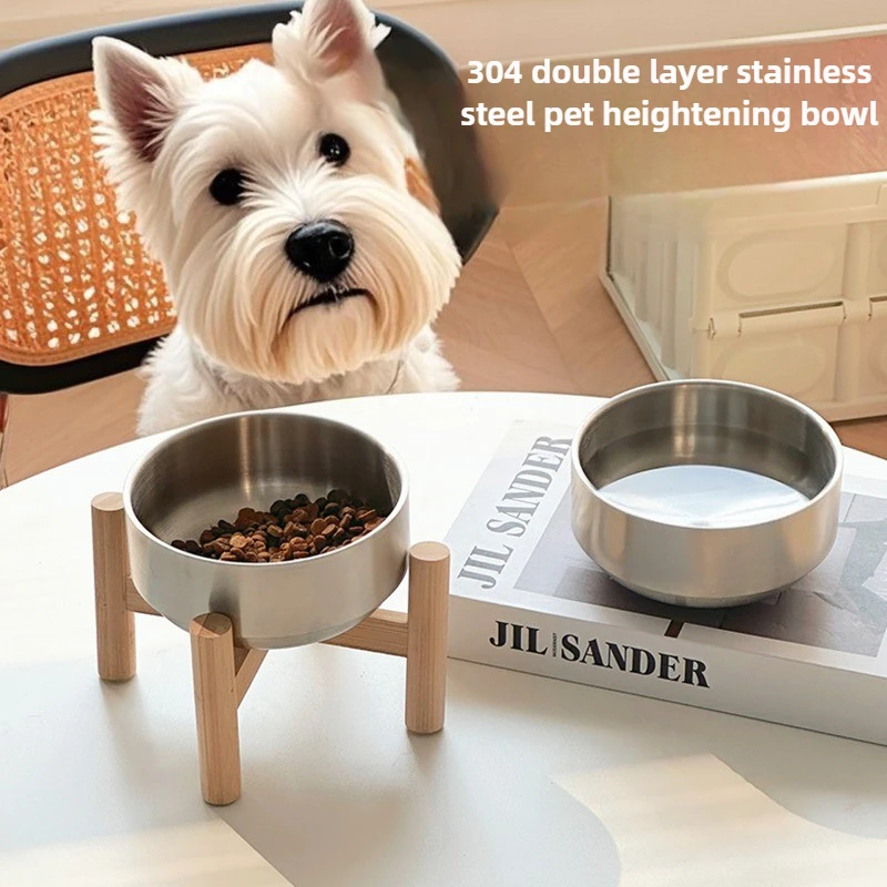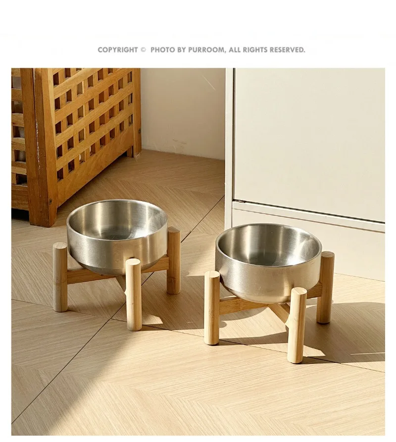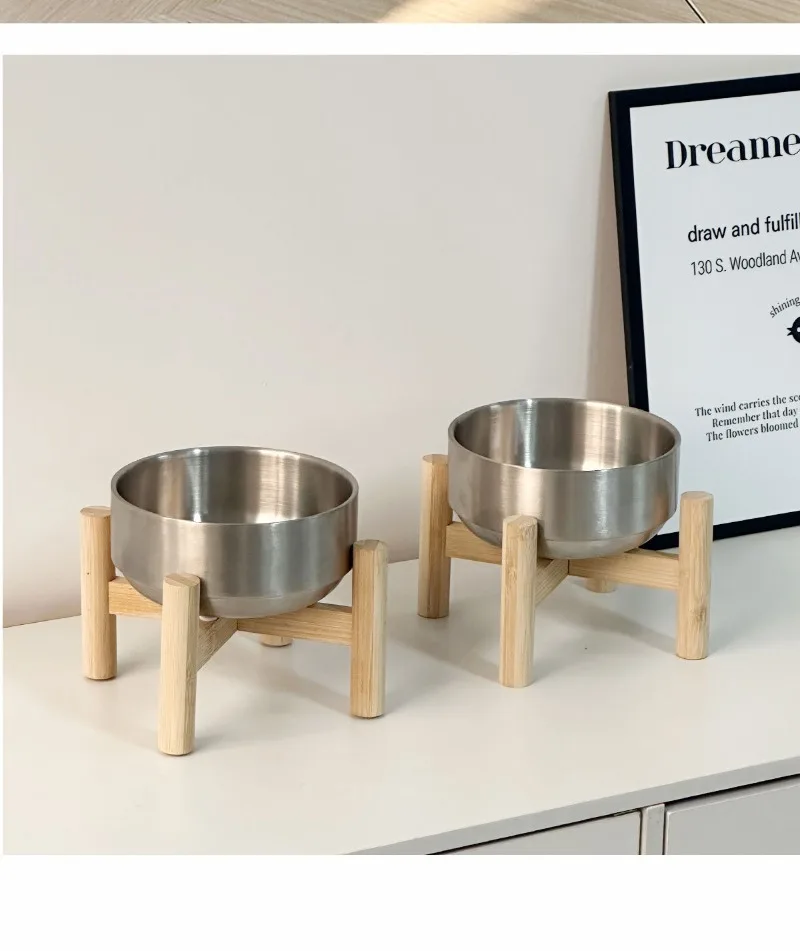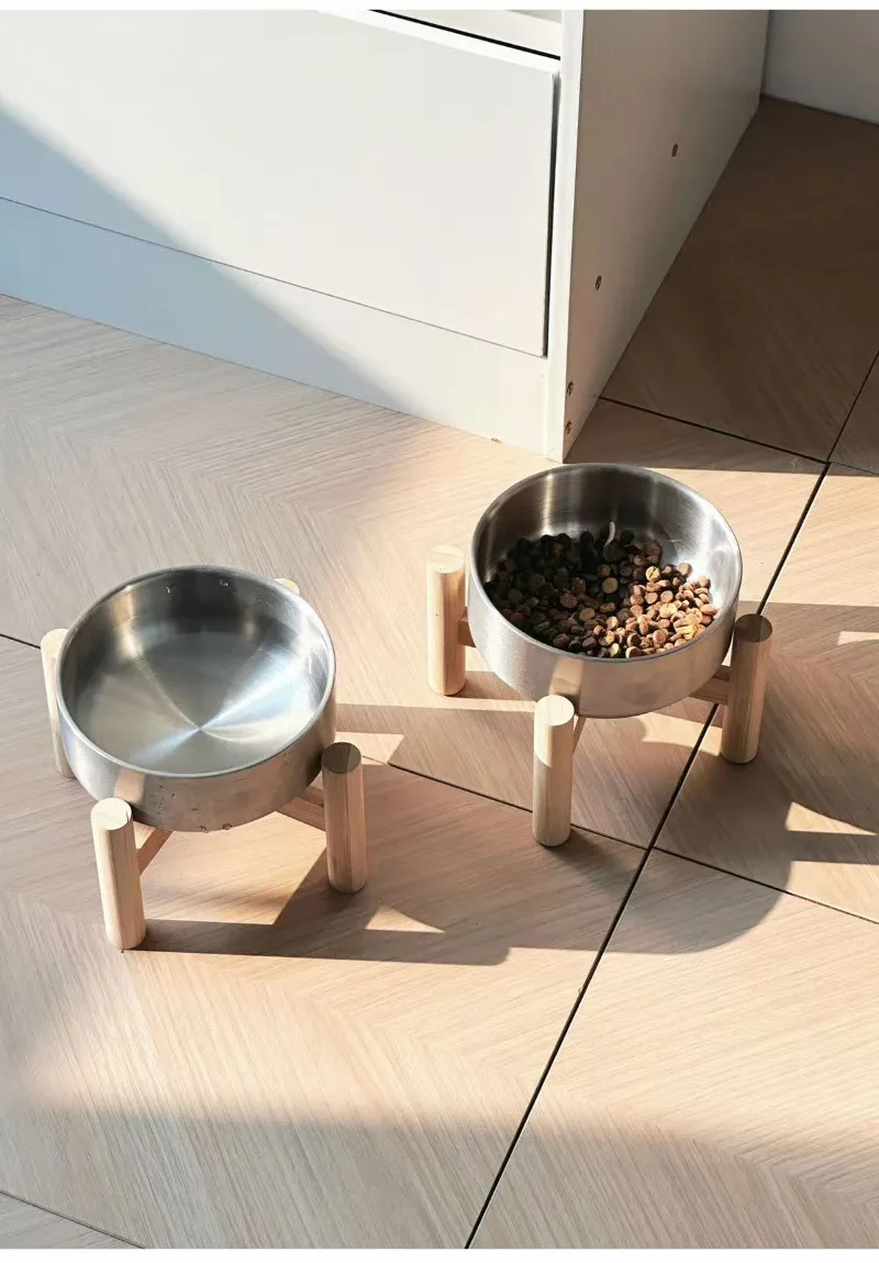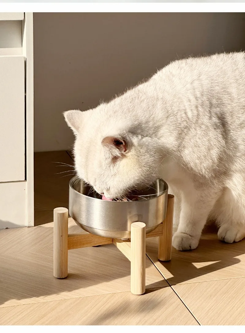 Cuenco para gatos con marco de madera de acero inoxidable, cuenco de comida de gran capacidad para proteger las vértebras cervicales, suministros de alimentación para mascotas, accesorios