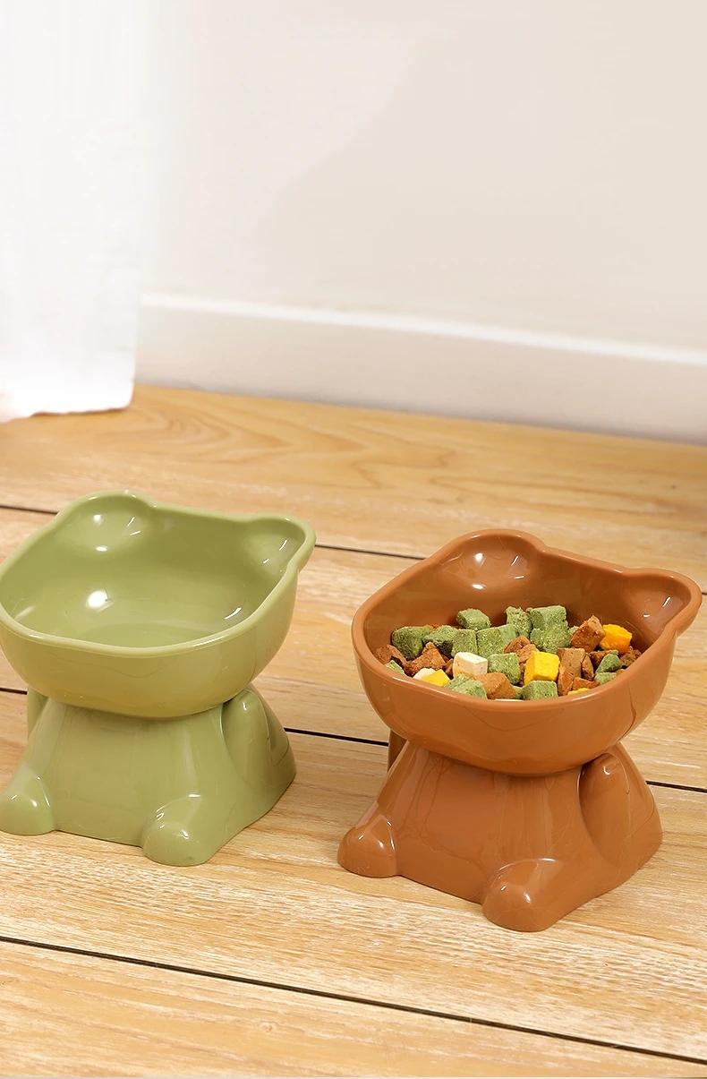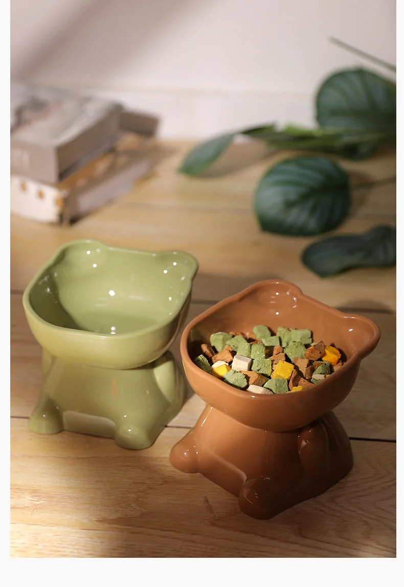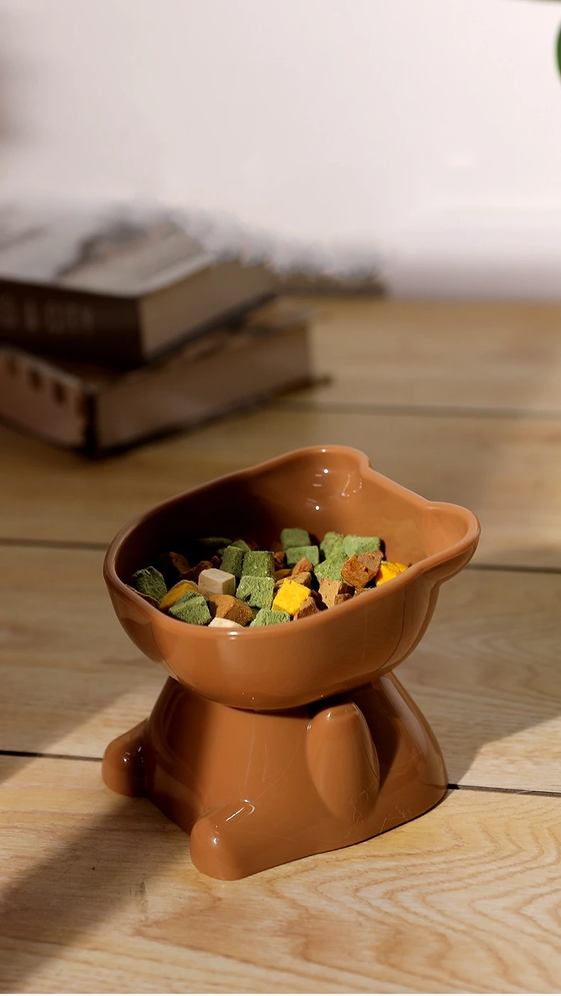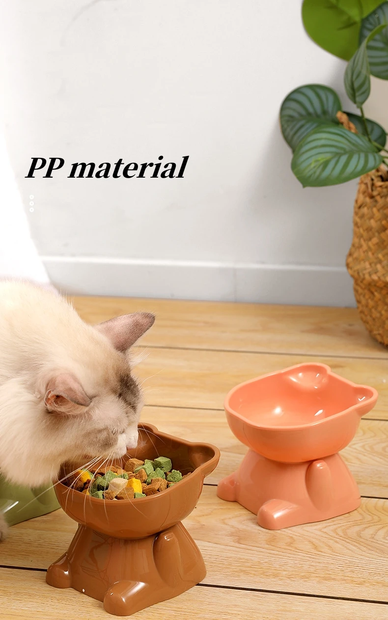 Cuenco para mascotas, cuencos para gatos de gran capacidad, protector de cuello con parte inferior oblicua, antiasfixia, forma de gato de dibujos animados, alimentador para mascotas, suministros para mascotas