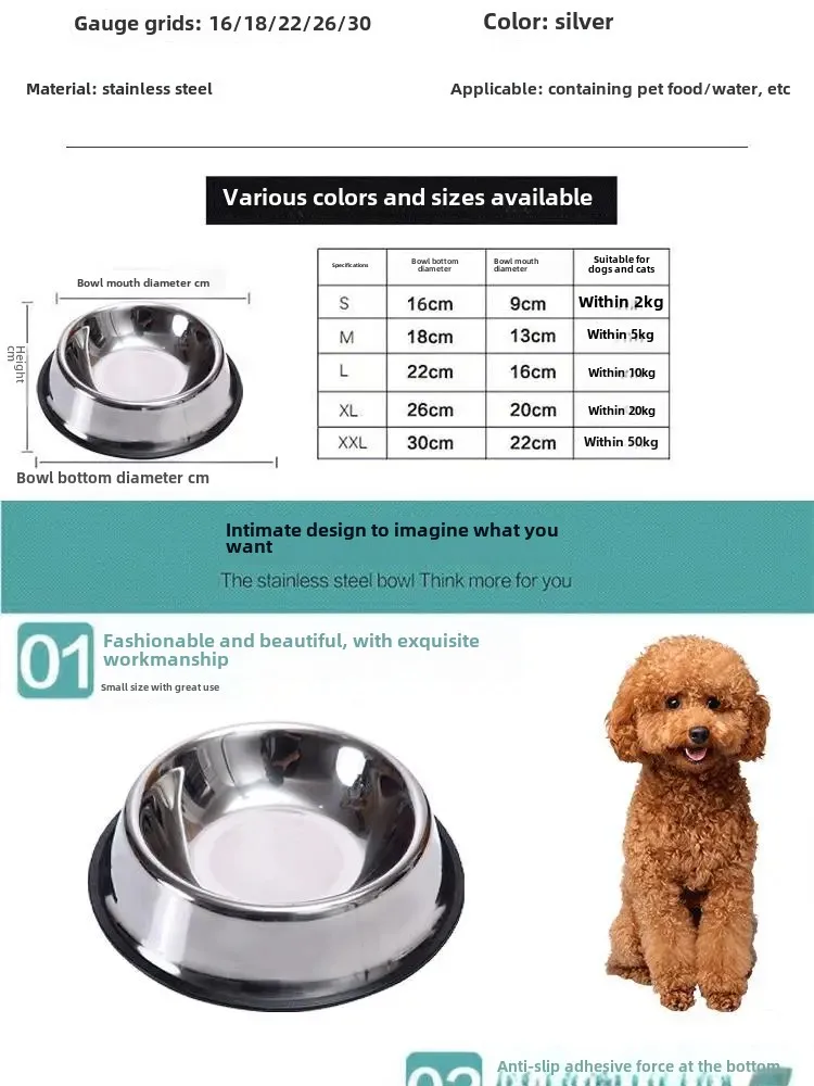 Cuenco grande de acero inoxidable para perros y gatos, lavabo de arroz antideslizante y resistente a mordeduras, cuenco de alimentación para beber para mascotas