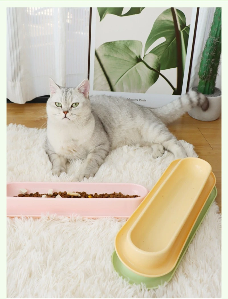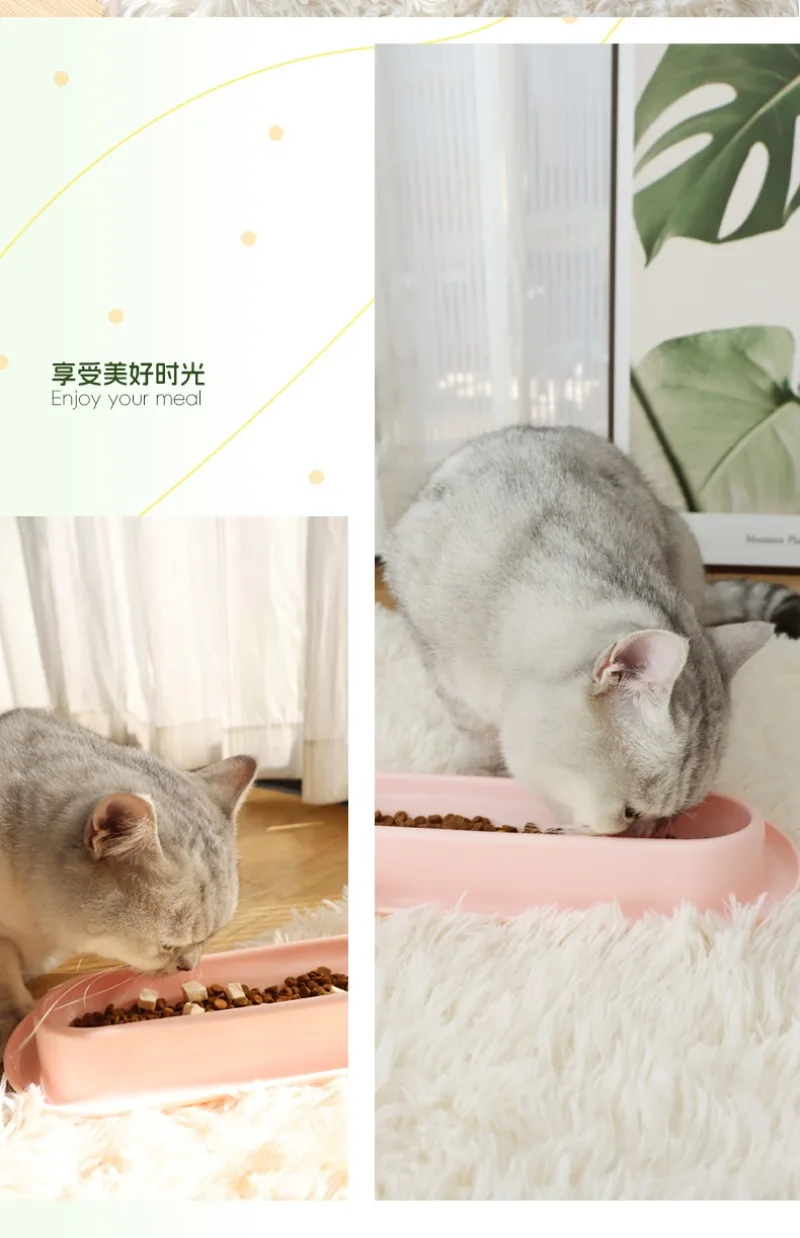 Cuenco largo de comida para gatos con ranura antifugas, plato de alimentación para mascotas con agua húmeda para evitar hormigas e insectos, cuenco de alimentación para mascotas de fácil limpieza