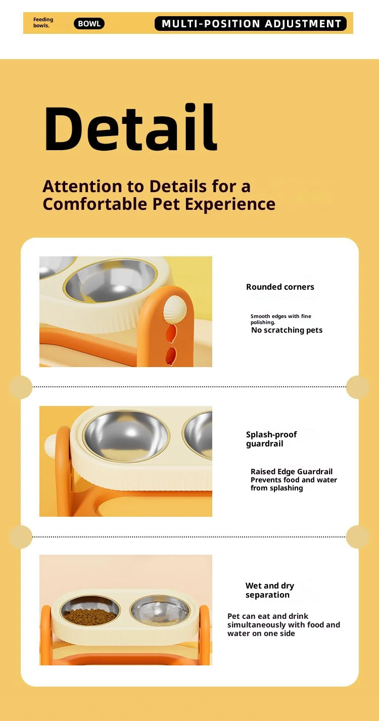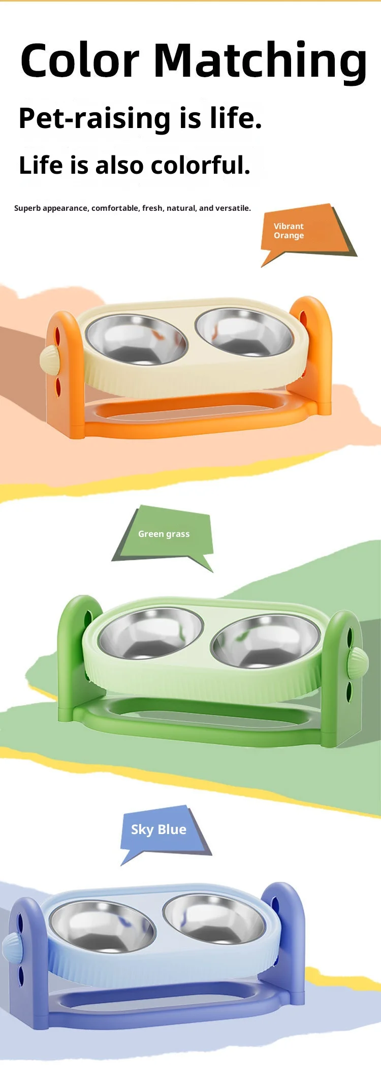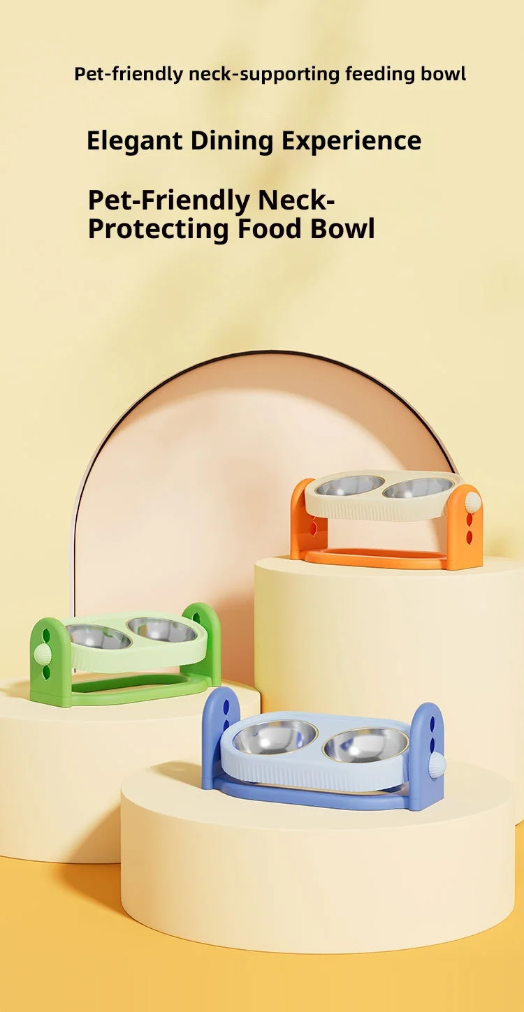Cuenco para mascotas de altura ajustable con soporte para el cuello, plato doble de acero inoxidable, antideslizante, fácil de limpiar, cuenco para perros y gatos de gran capacidad