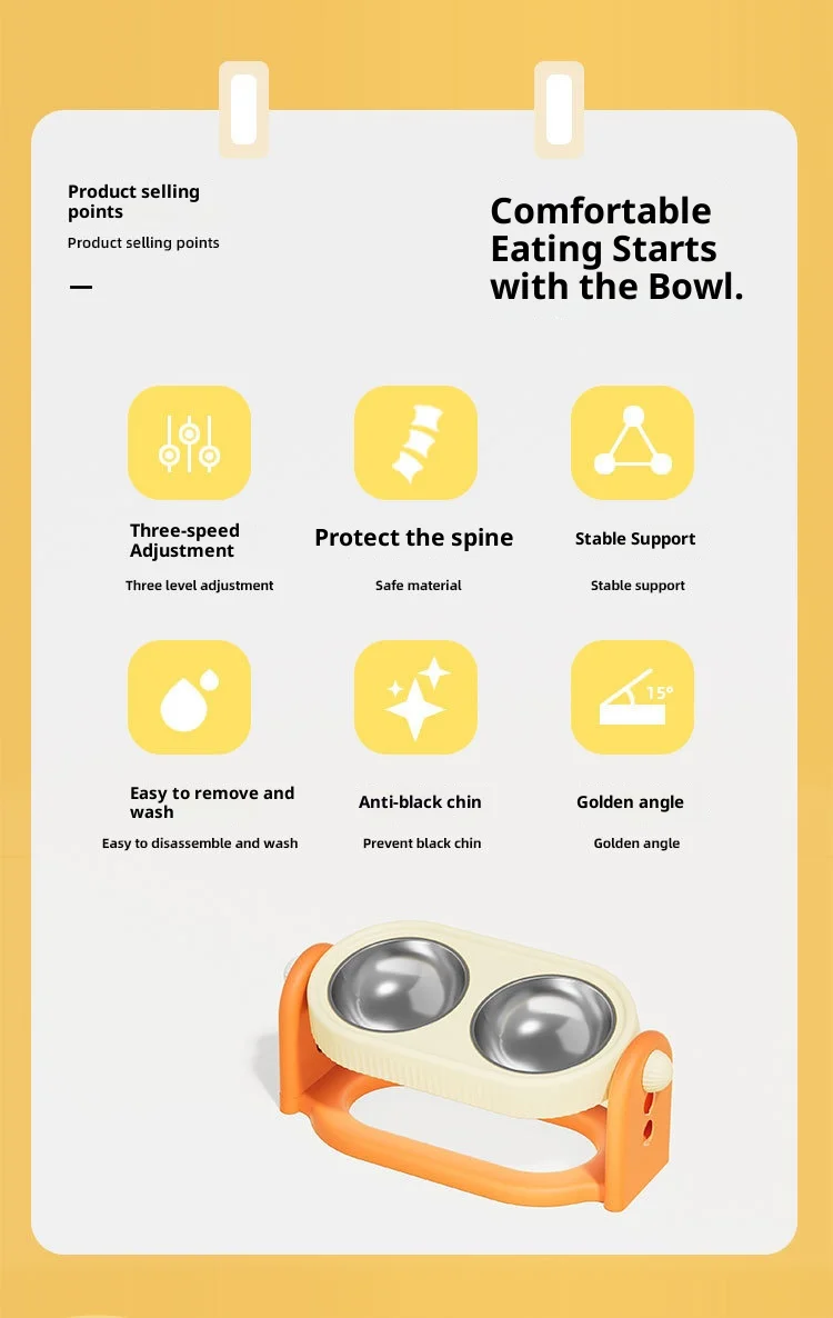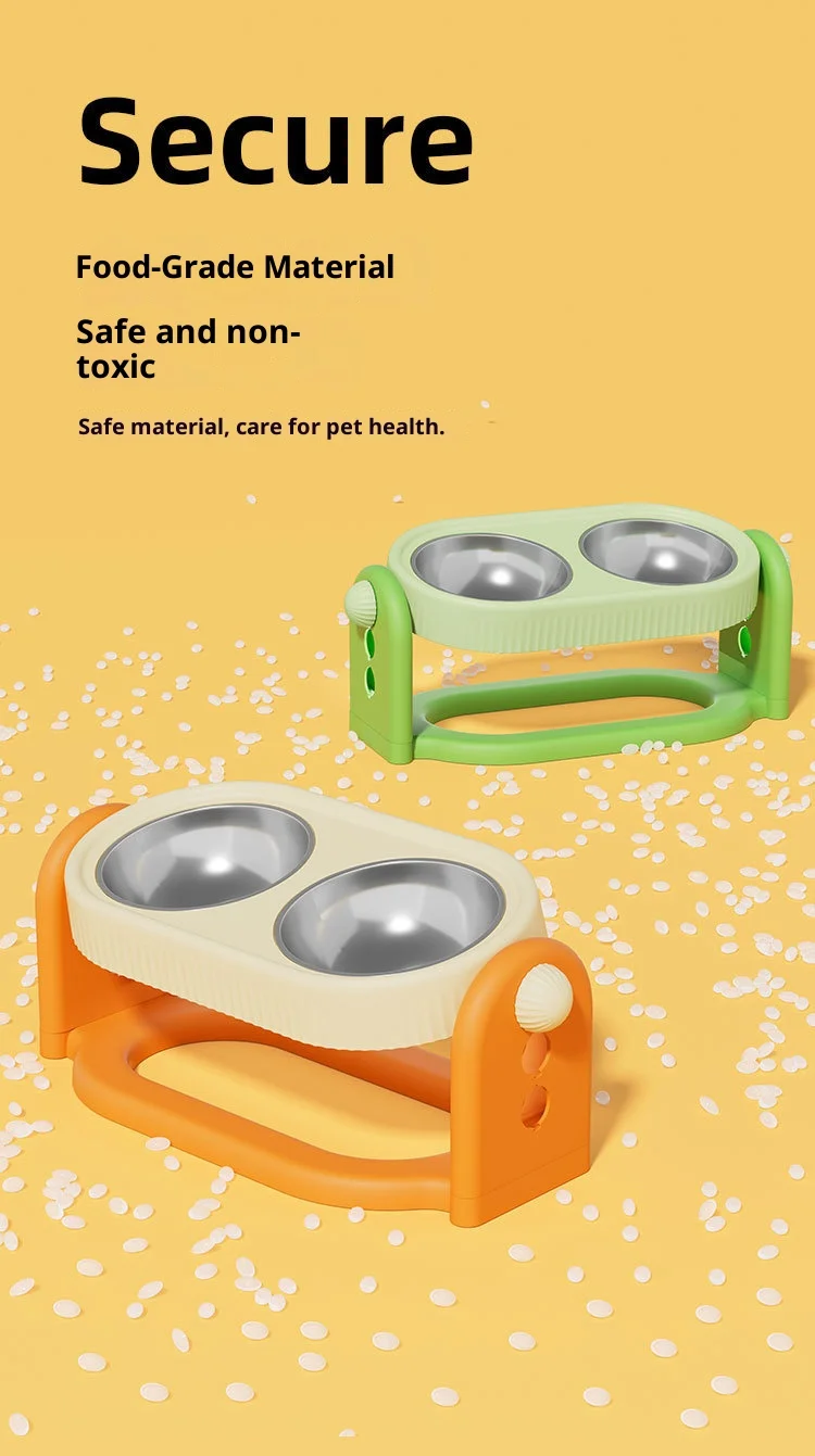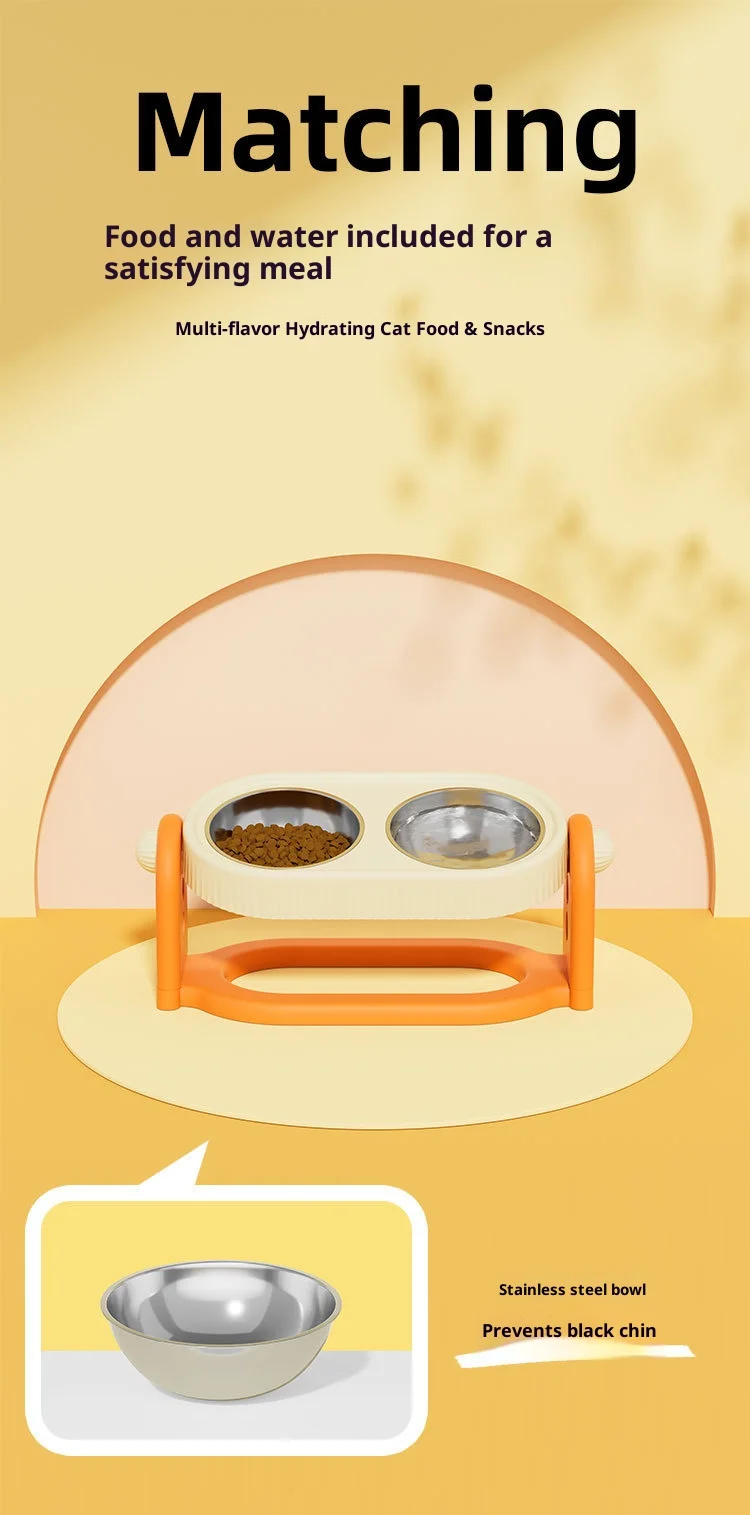Cuenco para mascotas de altura ajustable con soporte para el cuello, plato doble de acero inoxidable, antideslizante, fácil de limpiar, cuenco para perros y gatos de gran capacidad