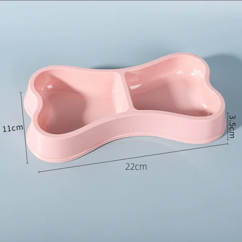 Cuenco para mascotas para el hogar, cuenco doble en forma de hueso, cuenco para gatos, cuenco para perros, bonito y duradero, inastillable, plato de comida para perros y gatos azul y rosa
