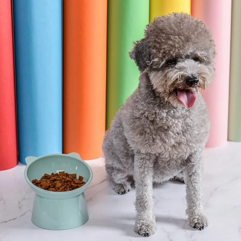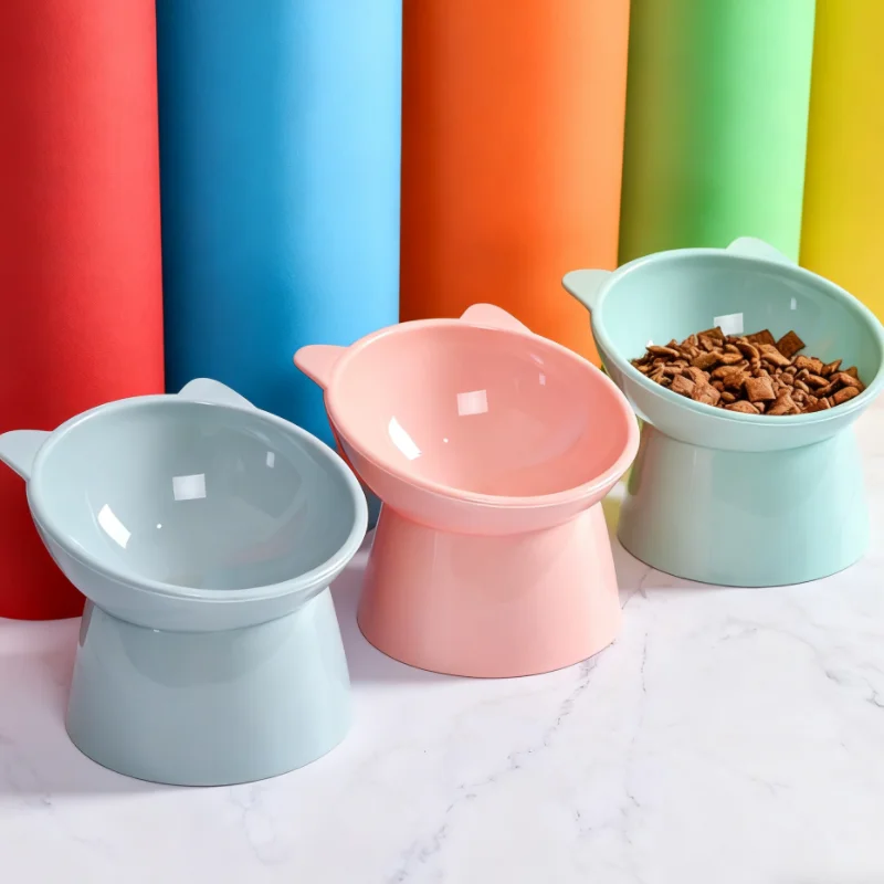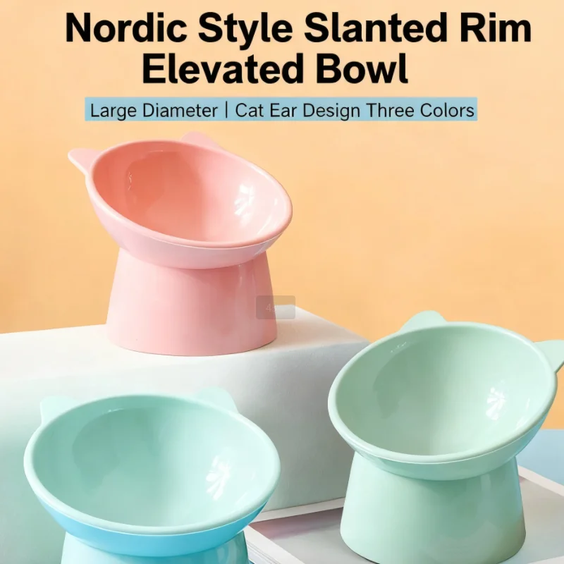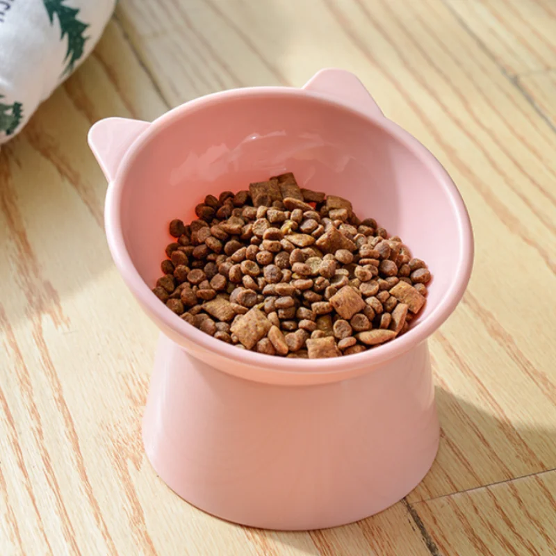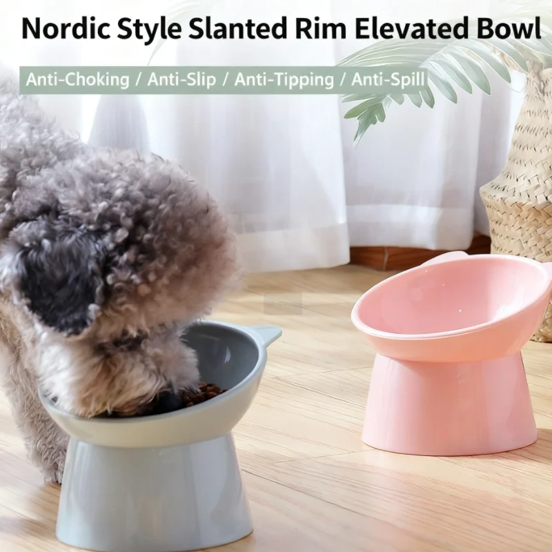 Cuenco para mascotas con orejas de gato inclinado de estilo nórdico, cuenco para perros y gatos de boca ancha, plato de comida antipérdida con soporte para el cuello.