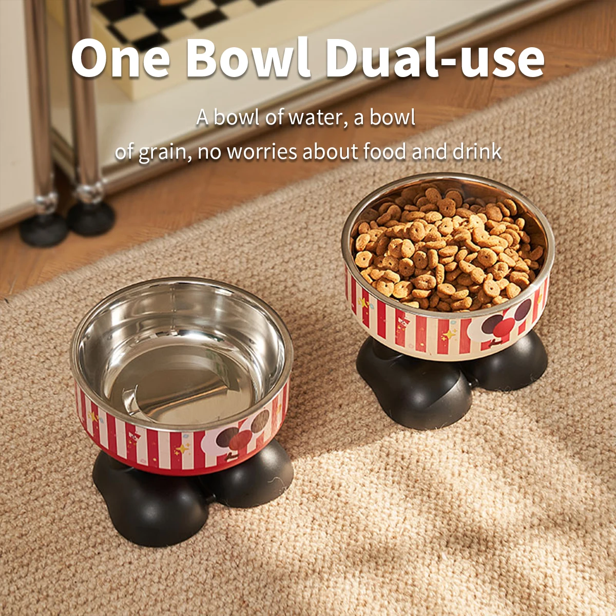 Un cuenco para mascotas de pie alto con palomitas de maíz a rayas, elegante perro de gran capacidad de acero inoxidable cuenco para alimentación y agua, c protector para el cuello.