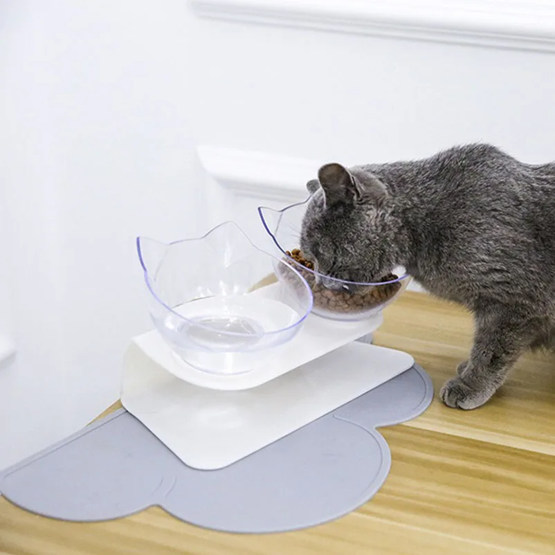 Cuenco para mascotas, protector de cuello para gato, cuenco transparente inclinado para cara de gato, suministros antideslizantes y a prueba de salpicaduras para mascotas, superventas