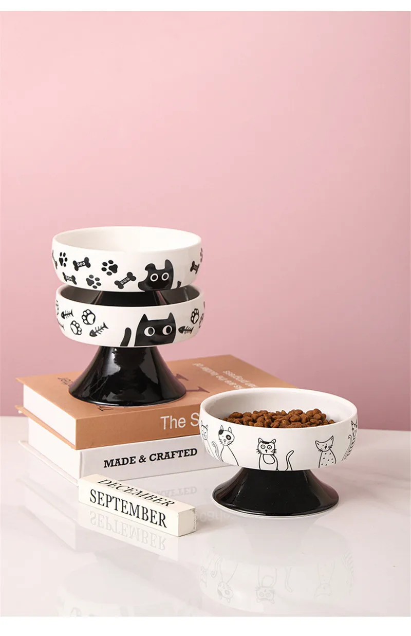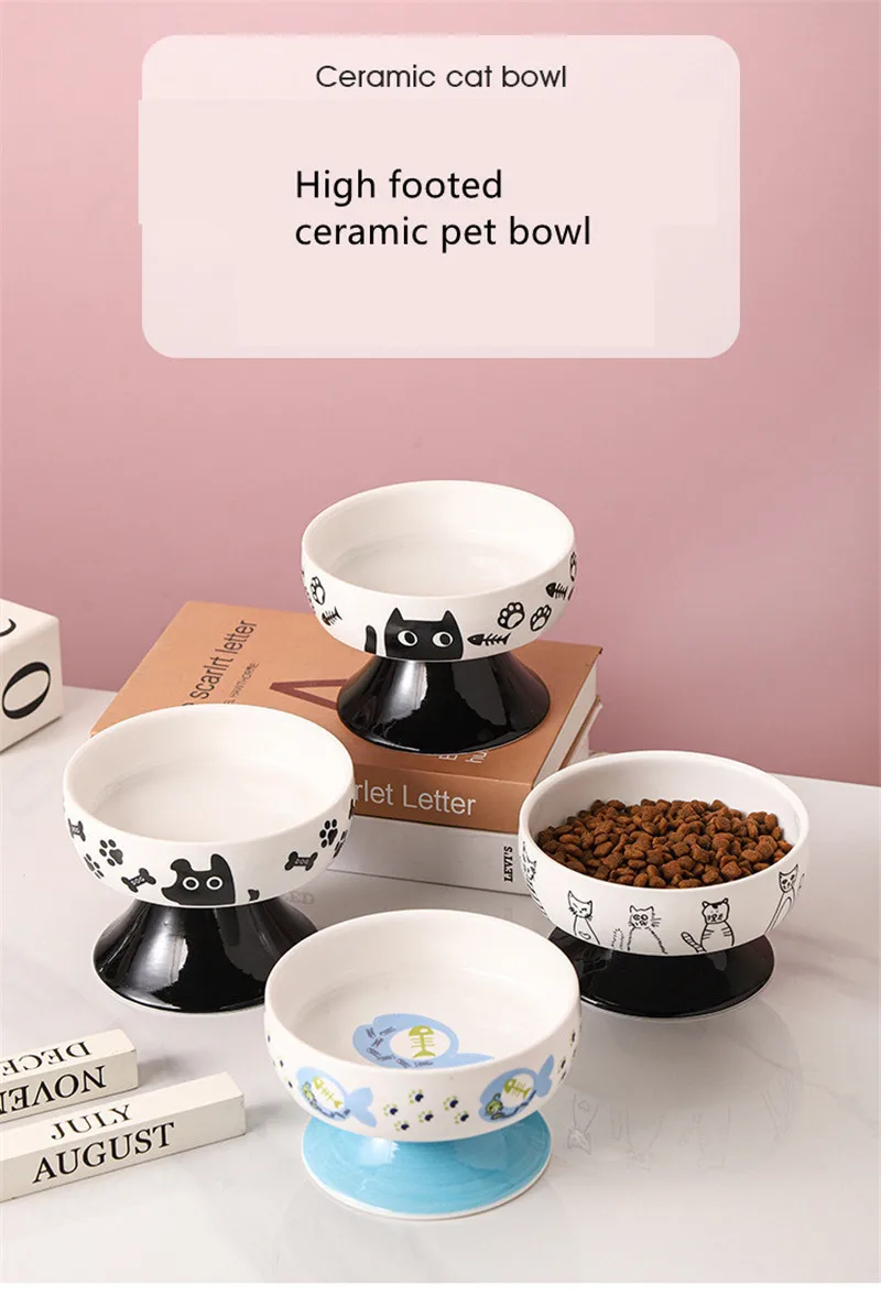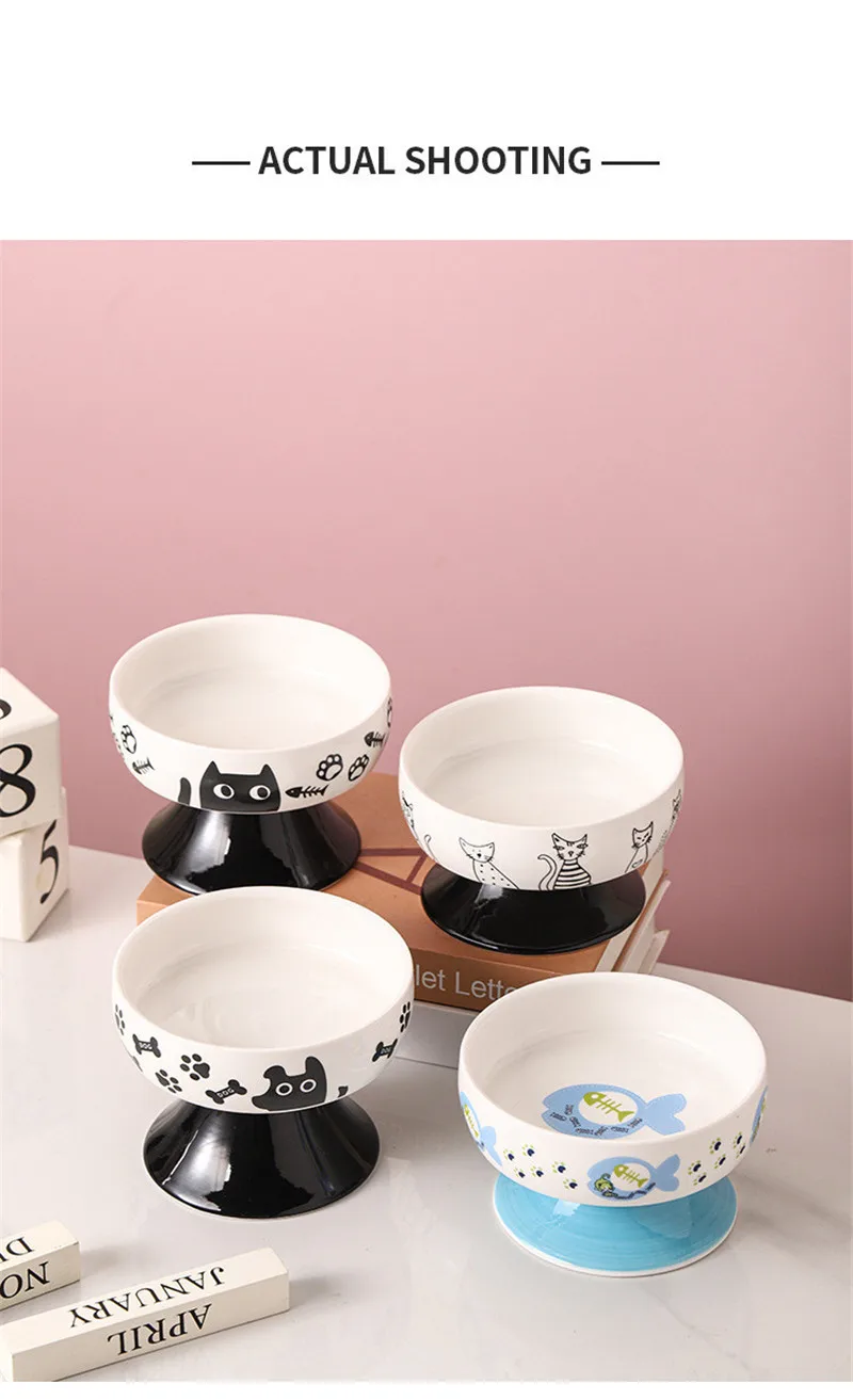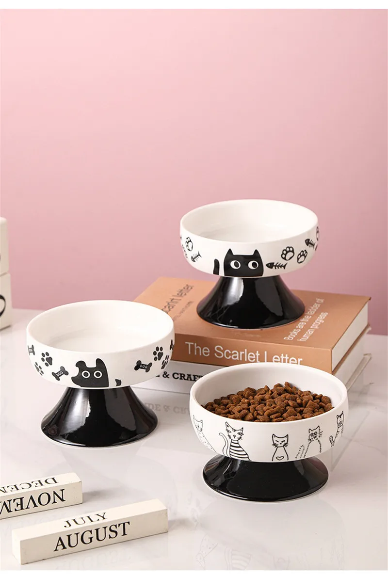 Cuenco negro para gatos, cuenco para beber para gatos, alimentador de comida para cachorros, cuencos de cerámica para gatos, cuencos para perros, suministros antigolpes para mascotas